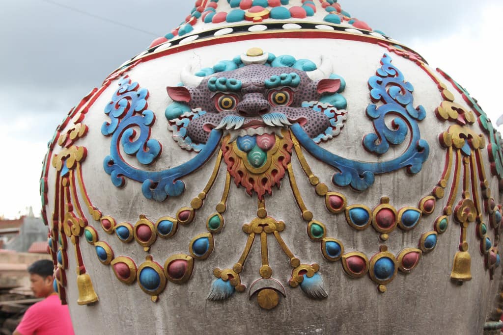 13 augustus: Helaas, onze laatste goedemorgen vanuit Nepal, Bhaktapur ditmaal. Nog een leuk dagprogramma in het vooruitzicht dus we blijven genieten tot de laatste snik. Na het ontbijt worden we opgehaald door Maxim, www.reismetmij.be, hij gaat ons de laatste dag begeleiden door Bhaktapur, Boudha en Pashupatinath. Bhaktapur is op de Unesco lijst (121). Het beroemde Peacock raam van een oud Newari huis. Hier brengt de pauw geluk, vandaar ook op vele plaatsen pauw veren! In de achterwijken van Bhaktapur volop herstel van de aardbeving van 2015. De “huisjes” die je hier ziet staan worden momenteel gebruikt als woningen. Helaas zijn er op deze plaats ook vele mensen omgekomen.