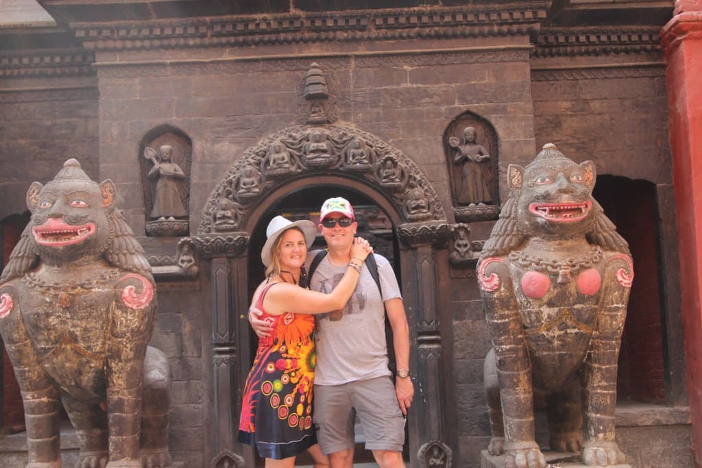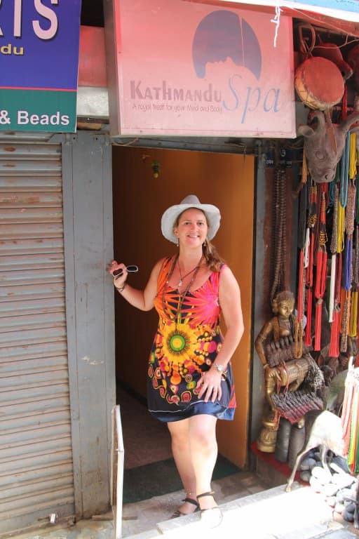 24 juli: Goedemorgen Kathmandu! 06.30 uur er uit, Jolanda doet een Yoga lesje in het hotel. Nepal, het land van de Yoga dus meedoen. Het was bijzonder en anders dan de yoga lessen in NL. Als je met “Reis met mij” reist krijg je op dag 1 of 2 een lekkere Nepalese massage aangeboden, deels om je jetlag en vliegreis er wat uit te masseren, deels omdat het overheerlijk is. Bij ons paste het niet op onze aankomstdag in Nepal dus vandaag. Aan de buitenzijde denk je, waar zijn we aanbeland, maar eenmaal binnen, genieten!! Aansluitend snuiven we nog ff wat straatbeelden op, geweldig!