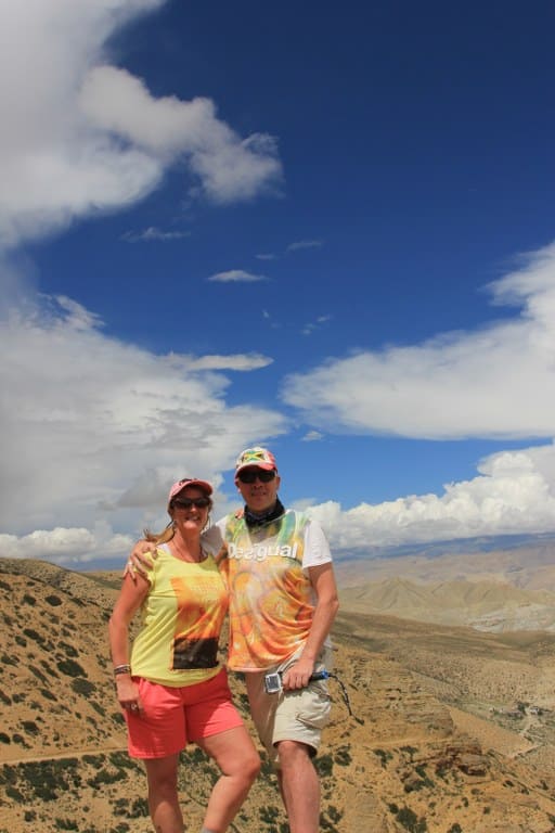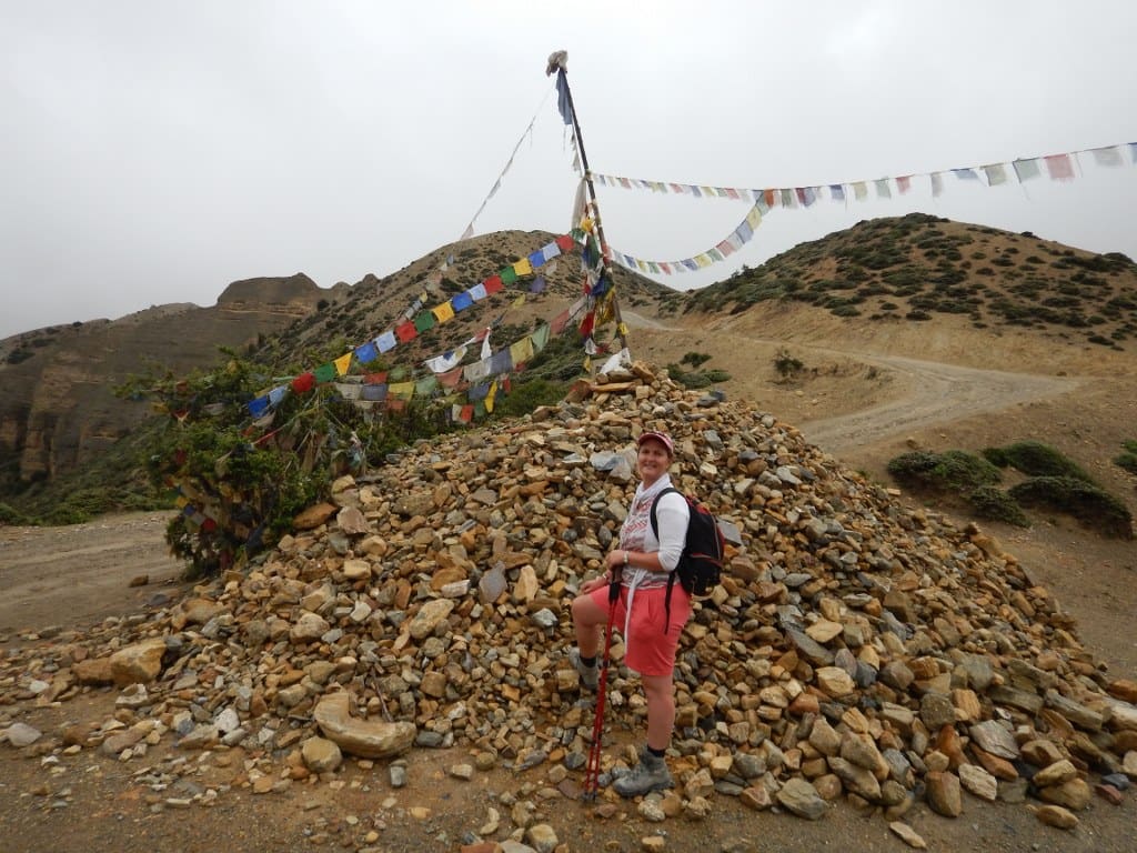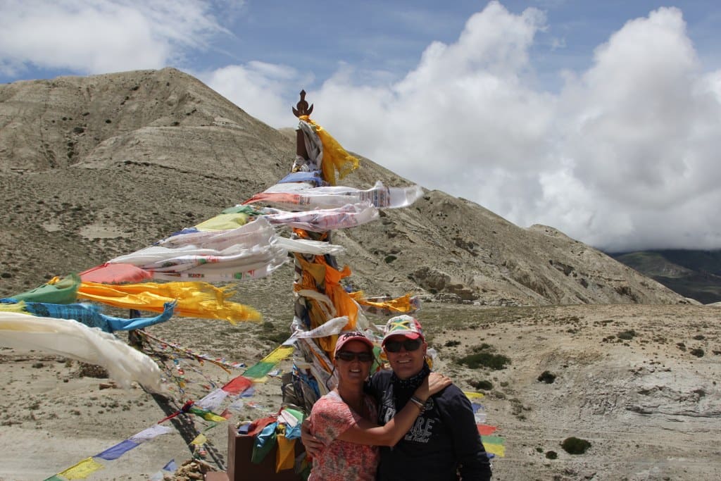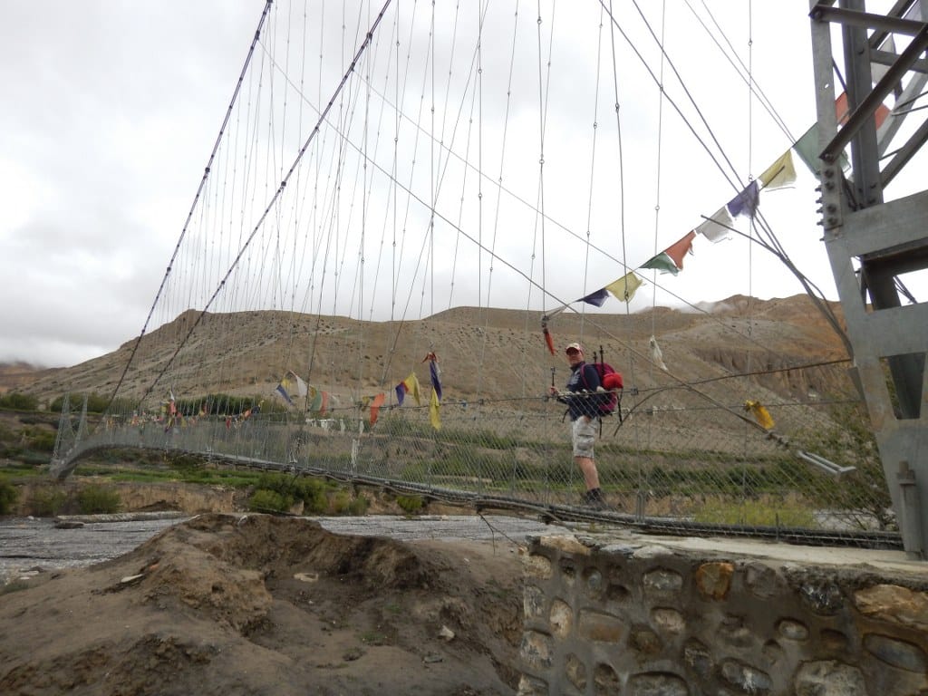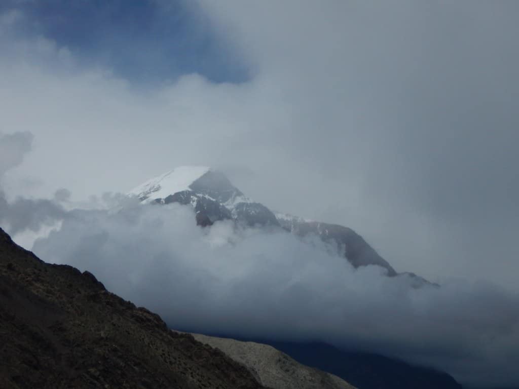 Ook vandaag is het weer onvoorspelbaar. Landslides, modder, in de wolken lopen, rivier doorkruisingen enz enz. In het Upper Mustang regent het bijzonder weinig, de regen die wij mogen trotseren is hier al vijf jaar niet aan de orde geweest. Na de lunch gaan we weer serieus klimmen. Bereiken de 4000 meter, toch echt wel moeizaam als je gewend bent op zeeniveau te leven. Jaaaa, we leveren echt wel een TOP prestatie vandaag. We zijn trots op ons zelf en dat kunnen we ook gerust.