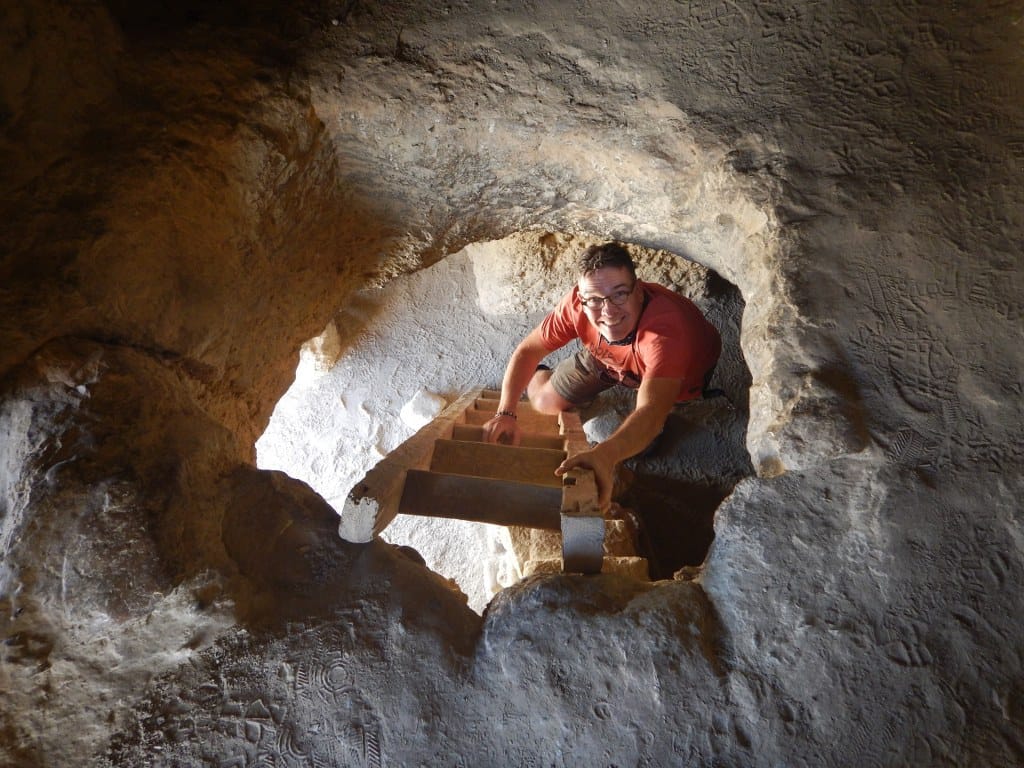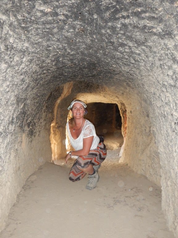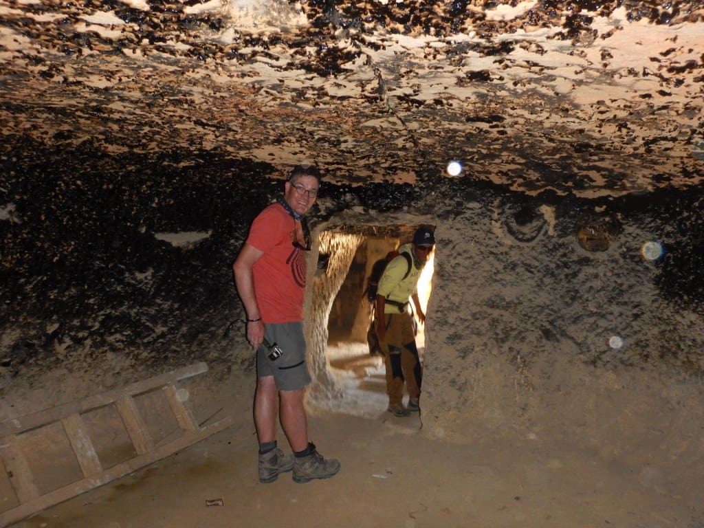 Koffie/thee en dan gaan we Sija Jong Cave bezoeken. Deze cave, bestaande uit 4 etages, is 4000 jaar geleden bewoond geweest. Ben je claustrofobisch dan kun je beter niet gaan. Ze zeggen dat er 108 kamers aanwezig zijn. Wij kunnen met laddertjes alle vier de etages bekijken en door de “raampjes” naar buiten kijken. In het voorste kamertje zijn voorwerpen te bewonderen die in de grotten gevonden zijn. Erg speciaal…….