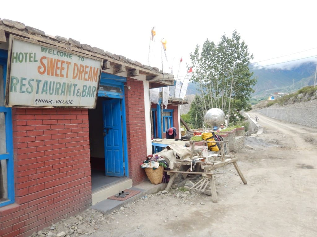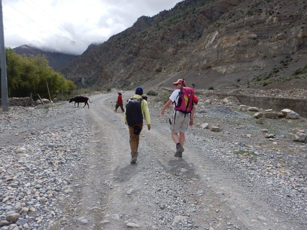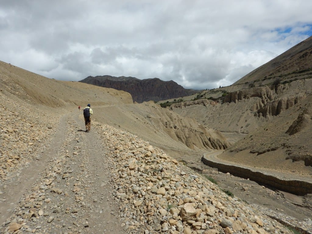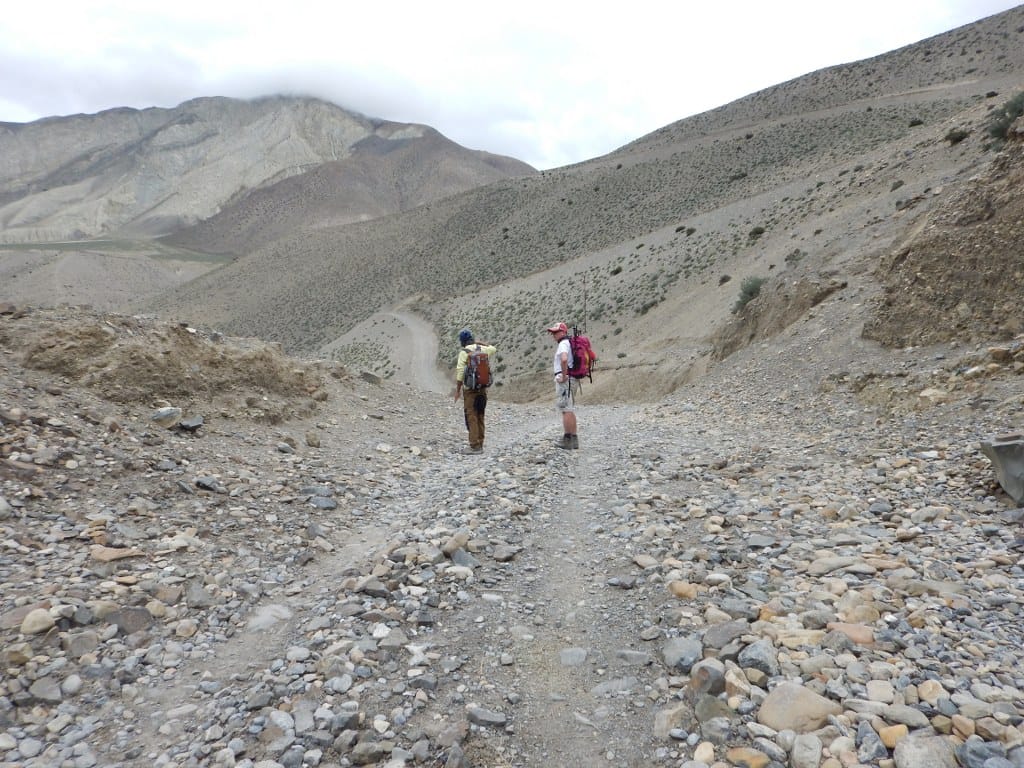 We lopen een uurtje of twee voordat we bij het “Hillton Hotel” cola met een mars nuttigen. Daarna vervolgen we onze schitterende route naar Kagbeni.