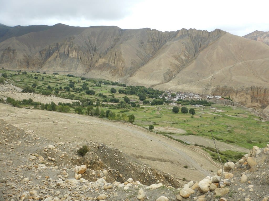 6 augustus: Goedemorgen vanuit wederom Chhusang. Na het ontbijt gaan we weer aan de wandel. Vandaag weer een flinke tocht naar Kagbeni voor de boeg. Wat gaat ons deze dag weer brengen? We lopen in een kleine vier uur naar Kagbeni, alwaar we lunchen in ons verblijf. Paradise Trekkers Home. We hebben deze route al eens gelopen, toen met wat slechter weer. Blijft adembenemend, wat een geweldige landschappen.