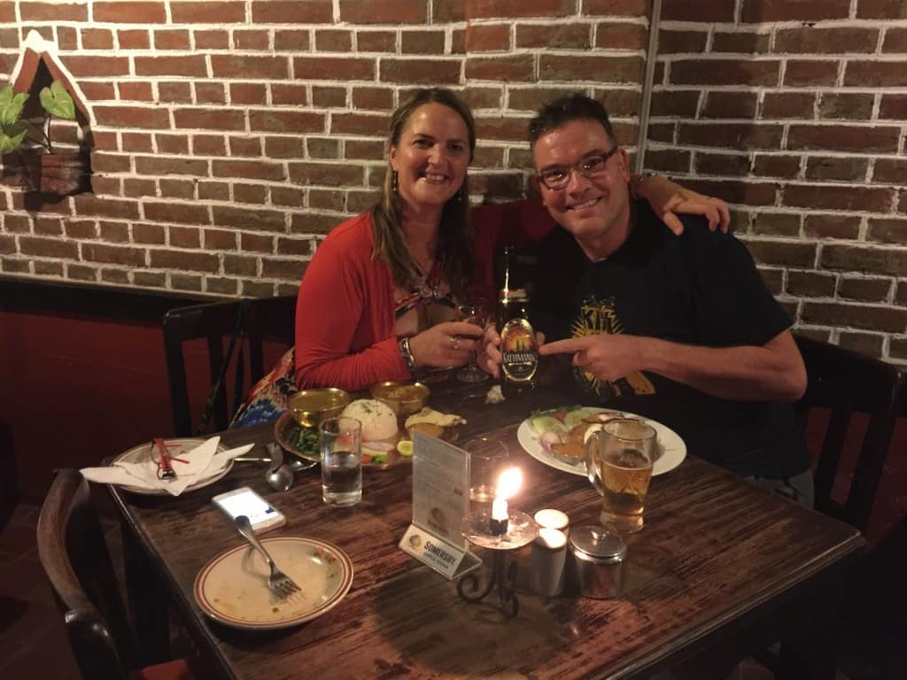 Na het inleveren van de bikes, drinken we een biertje op een terras.Daarna opfrissen/douche en lekker met z’n tweetjes uit eten in Pokhara. Leuke stad en je kunt er ook ’s avond prima alleen op pad, mensen zijn hier erg vriendelijk en we voelen ons nergens onveilig. Dit is ons voorafgaand ook medegedeeld. Na het eten gaan we direct plat want morgenvroeg om 05.00 uur moeten we er weer uit. Poging twee om te vliegen naar Jomson.