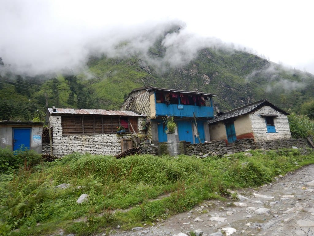De hoogte begint zijn tol toch wel wat te eisen, Jolanda krijgt hoofdpijn die ze nooit eerder zo gevoeld heeft. “Ik voel me als een dweil en mijn hoofd maakt me gek”. De stukken omhoog zijn pittig in deze staat. Tot aan de lunch volgehouden, daar regelt Binod een jeep. We hebben lunch in Jaitae. Helaas wat niet kan, kan niet. Op deze hoogte is het ook van belang naar je lichaam te luisteren. Bhim, onze drager blijft bij Jolanda achter en Ruudje trekt verder met Binod naar Ghami. Passeren de 4010 meter, yeeesssss voor het eerst over de 4000 meter! Een mijlpaal. De laatste meters zijn echt zwaar, stukje lopen, rusten, stukje lopen, rusten….. Binod meld me dat het boven de 3500 meter zo gaat, en dat we in een aardig tempo boven zijn gekomen.