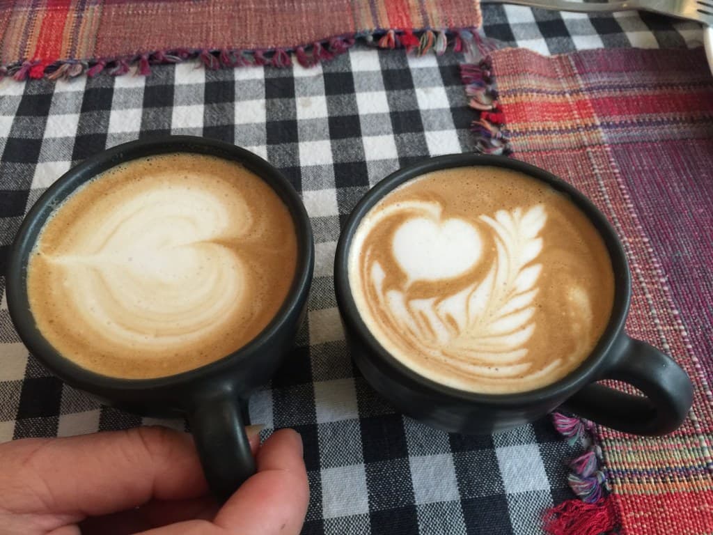 Daarna gaan we koffie drinken met Bhim en Binod, sinds ruim een jaar kennen ze hier ook cappuccino.