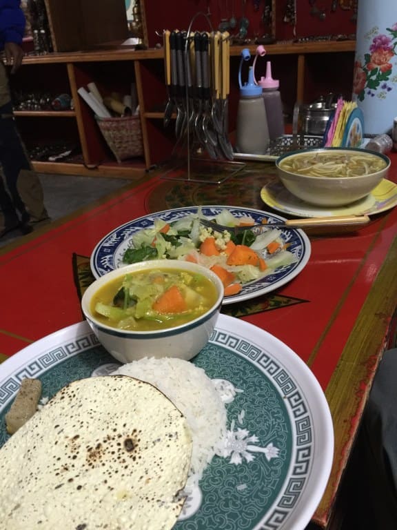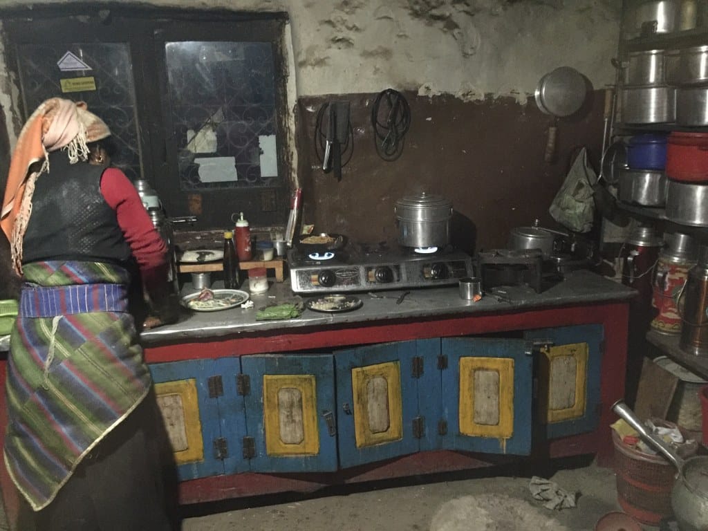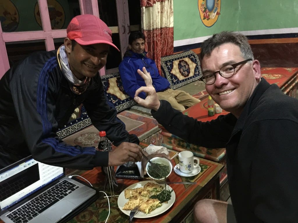 Terug in ons hotel aangekomen was het tijd voor thee en diner. Bhim heeft vanmorgen een zak groente meegedragen, die hij heeft geplukt aan de Tsarang river. Deze maakt hij zelf klaar in de keuken van het hotel. Wij mogen mee proeven en “Bhim’s vegetables” zijn een begrip. Reis je ooit door Nepal en heb je Bhim als drager/porter, vraag dan zeker even naar zijn Vegetable recept, lekker! Genaamd: khole sag (Betekent: Rivier groente) Daarna plattie na weer een super vette dag in Upper-mustang. Ook hier weer erg koud in de nacht, maar goed we zitten dan ook weer op zo’n 3500 meter.