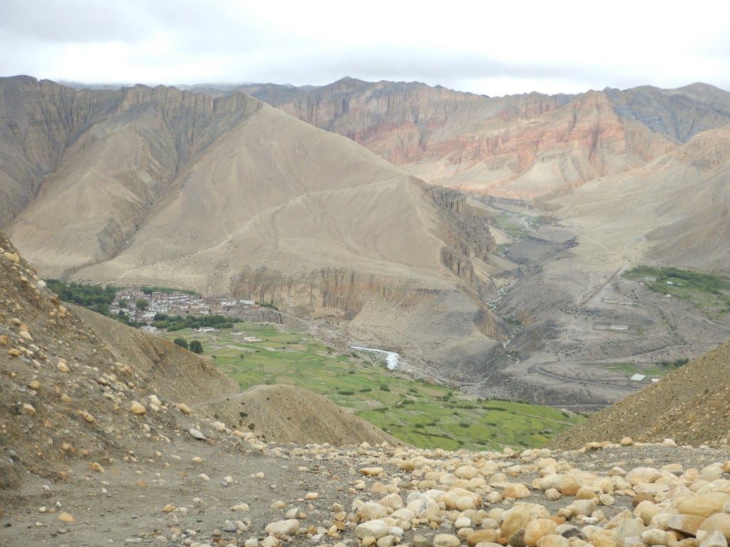 2 augustus: Goedemorgen Ghami, op 3500 meter. Na een wederom heerlijk Porridge ontbijt, genieten we nog even van de laatste straatbeelden van Ghami. Het weer is een stuk beter geworden, nog niet 100% helder maar het gaat de goede kant op. Dorpje uit is al direct weer klimmen. Ditmaal komen we beide boven op ongeveer 4050 meter. Nog nooit zoveel ademgehaald op een ochtend.
