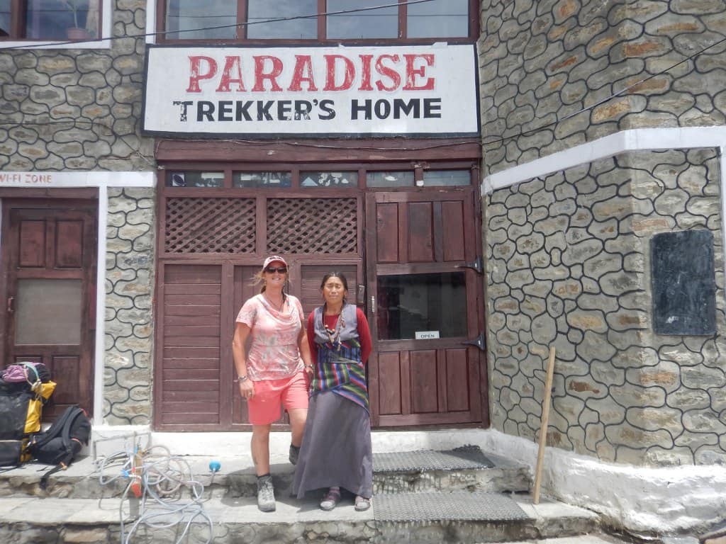 Helemaal blij met de Wifi, echter na een klein uurtje viel de elektriciteit uit en weg was de wifi. Typen dus met de looplamp erbij. Lauwe douche, daarna snackje, biertje, thee en avond eten. We vragen of de kachel aan mag, “ja, dat mag”, maar die hield er na vijf minuten alweer mee op. Verrassend, we gaan weer tijdig plat na een mooie wandeldag. Genoeg dekens want het is hier weer koud, 3800 meter. We leren, tijdens het eten en bij kaarslicht, nog wel een hele speciale man uit Belgie kennen, Gregory Lewylie. Hij reis per fiets door Nepal maar reist bijna over ter wereld per fiets. Spectaculaire verhalen passeren de reveu. Genieten en zeer bijzonder dat we hem hier leren kennen! Reizen is gaaf!