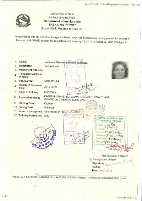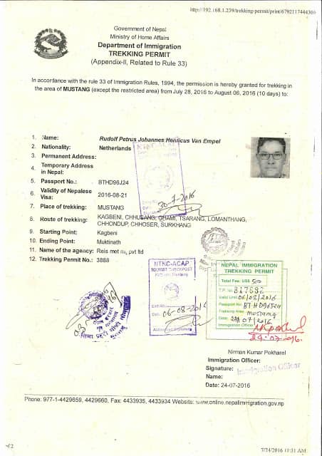 We kruisen de grens met Mustang waar we onze permits af moeten laten stempelen.