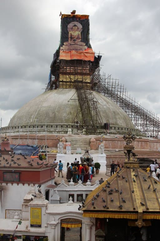 Door de stromende regen bezoeken we deze Monastery nog, deze was ook voor een groot gedeelte beschadigd door de aardbeving van 2015. Begint nu weer erg mooi te worden, Laxmi en Maxim waren hier aanwezig tijdens de aardbeving.