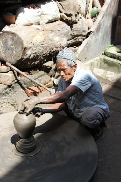 We bezoeken Pottery Square, waar zou die naam toch vandaan komen. Een van werelds bekendste potteries waar ze nog traditioneel werken met een houten wiel.