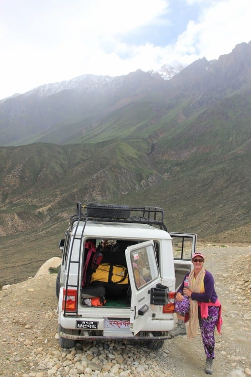 Terwijl wij “afzien”, is Jolanda inmiddels in slaap gevallen krijgen we door van Bhim. Dat ipv om 12.00 uur, om 14.00 uur een overvolle lokale Jeep arriveert. Proppen dus! Alleen voor Jolanda wordt een plaatsje gemaakt omdat ze niet fit is. Bhim heeft pech, die mag alsnog te voet. Ook dit is weer een ervaring, met veel modder van de zware regenval en de conditie van de wegen. +/- 14 personen in 1 Jeep! Yep, we zijn in Nepal. Wel TOP en gastvrij dat ze in ieder geval plaats maken in een overvolle jeep. We hebben het al vaker gezegd, Nepalezen zijn echt super aardige mensen. We hebben ons hier nog geen seconde onveilig gevoeld en dat is ook nergens voor nodig.