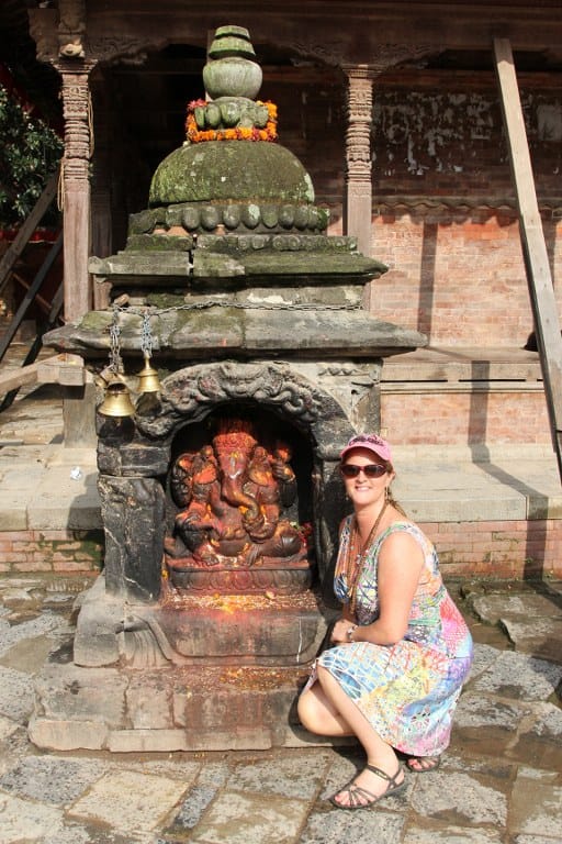 We bezoeken Kumari, echter we mogen hier geen foto’s maken. Normaliter verschijnt zij eenmaal per dag, op basis van een donatie valt er toch iets te regelen……Een jong meisje wat als Godess wordt verklaard, zodra haar maandelijkse perioden beginnen is het verhaal ten einde en wordt er een nieuwe Kumari gekozen. Eenmaal Kumari, nadien krijg je je gehele leven betaald en dat van de familie, van de overheid. Make-up is altijd hetzelfde, m.n. het zwarte lijntje uitlopend langs haar ogen. Bij de gebedsplaats van Ganesh, nu ff wat rustiger, hier is het doorlopend erg druk. Op zaterdagen zijn hier extreem veel mensen om te bidden.