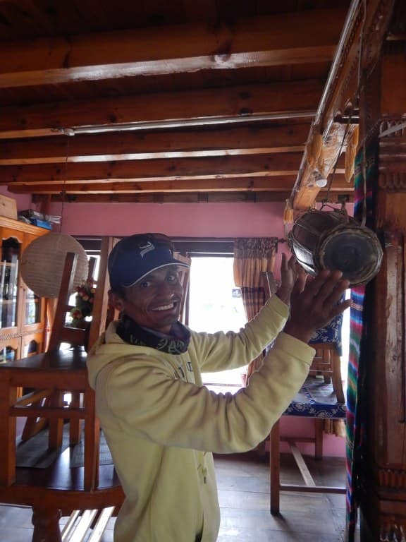 We hebben nog een korte cola stop bij mensen thuis. Ongelooflijk hoe de mensen hier nog leven in de bergen. Erg bijzonder om te zien en we gaan jaren terug de tijd in, die wij niet kennen. We worden hartelijk ontvangen en we geven de kindjes nog wat snoepjes en pennen.