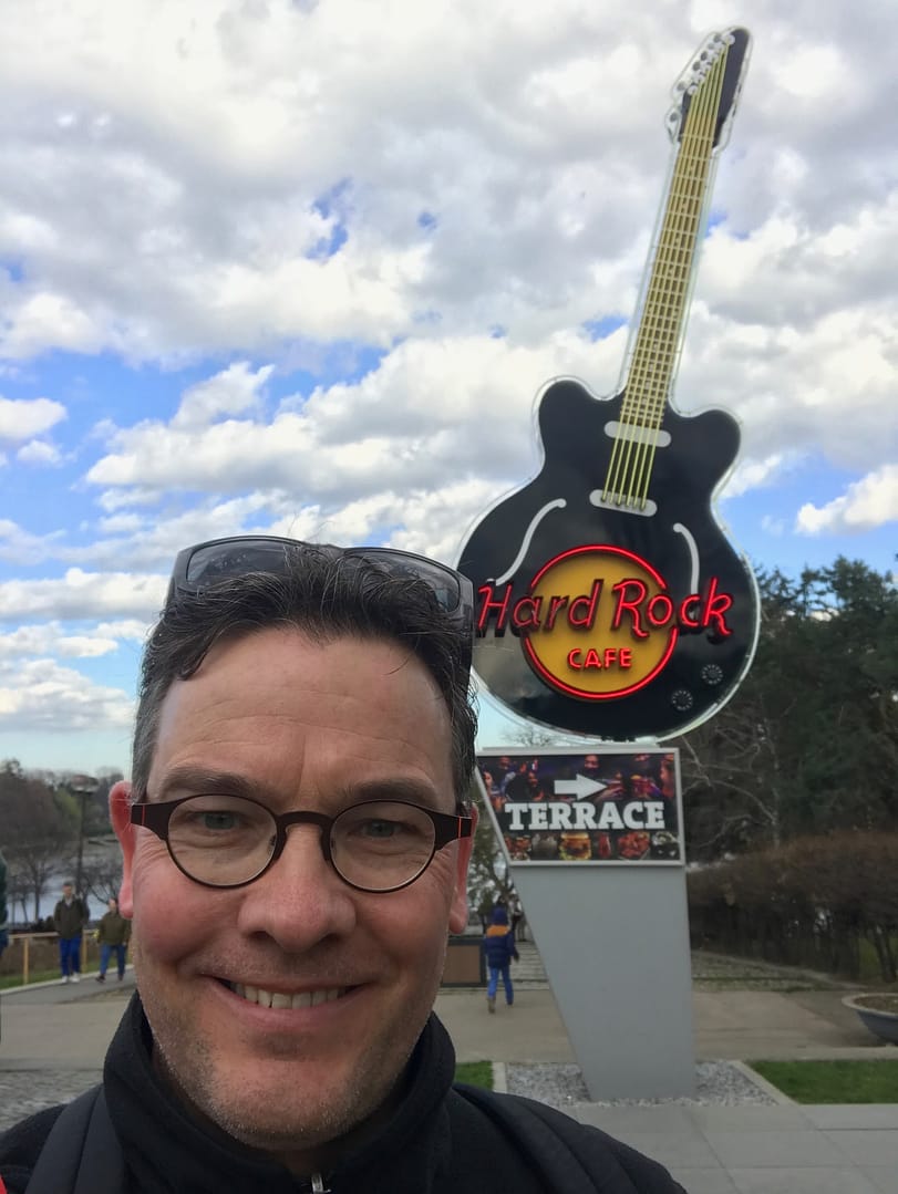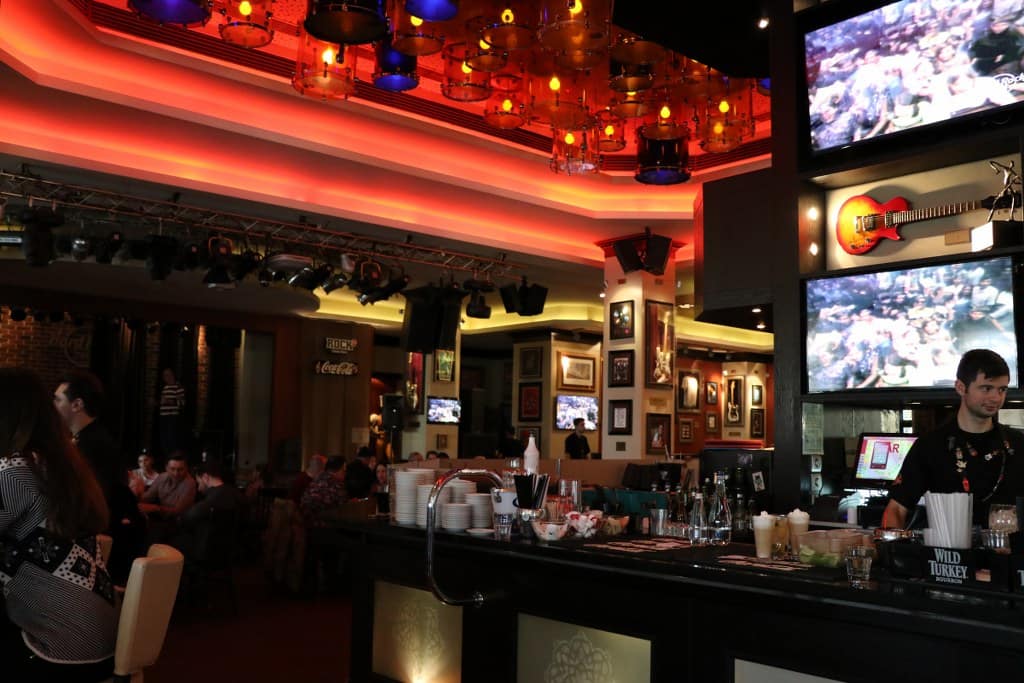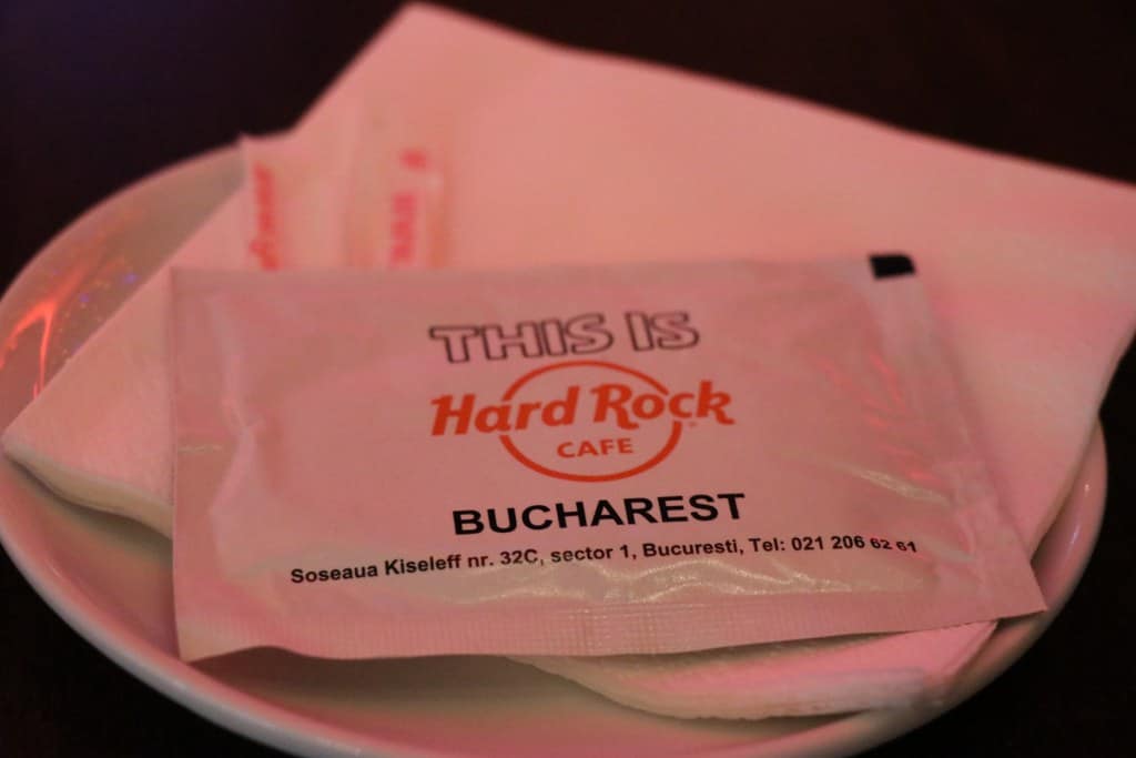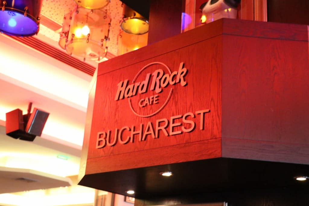 Mijn uiteindelijke doel bereikt! Hard Rock Cafe Bucharest, een kleine 8 km gewandeld, dus snel maar eens wat drinken. Deze Hard Rock Cafe mag er zeker zijn! Daarbij is dit een erg grote café, ik denk wel een van de grootste die ik bezocht! Wie hanger er natuurlijk ook, juist ja, mijn KISS vrienden! Tja, nu we er toch zijn, doe maar zo’n lekkere HRC burger!