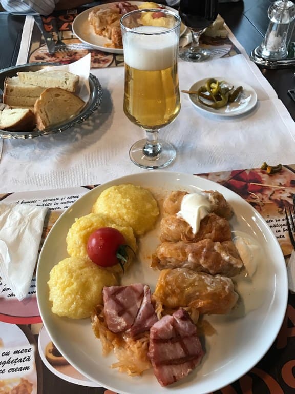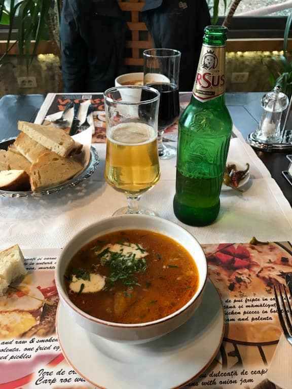 We doen een traditionele Roemeense Lunch. Echt wel lekker! Ennuh een lekker Ursus biertje bij de lunch, why not tis vakantie!