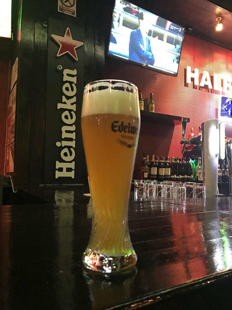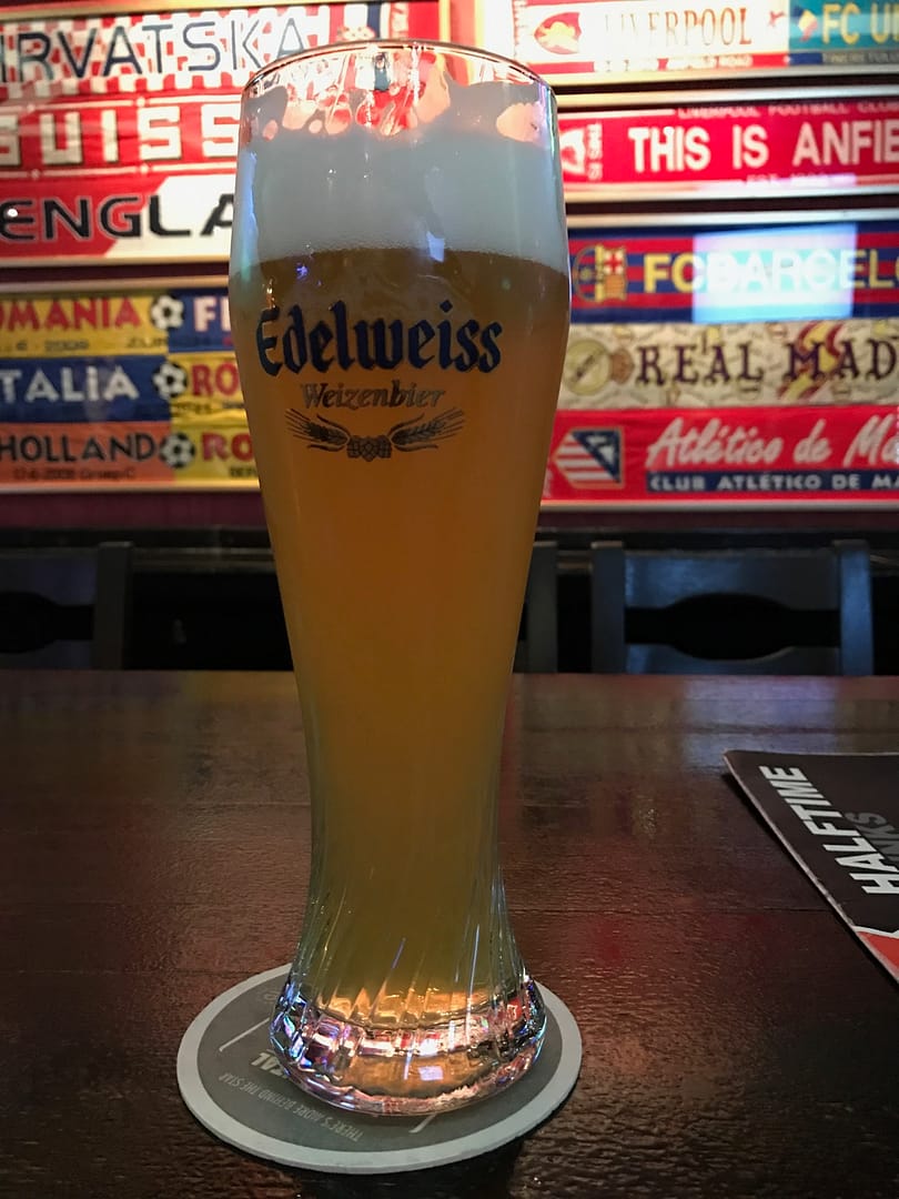 Eten bij Aton Club. Pizza met bier…… Alhoewel “bier”, deze zooi uit Tsjechië is toch niet alles….. Dan maar een Duitse Beck’s, ook geen topper maar een stuk beter! Daarna eens kijken waar ik naar AJAX tegen FC kopenhagen kan gaan kijken. Gevonden, sportscafe Half Time. Eindelijk een goed biertje, ennuh een voetbalkroeg……