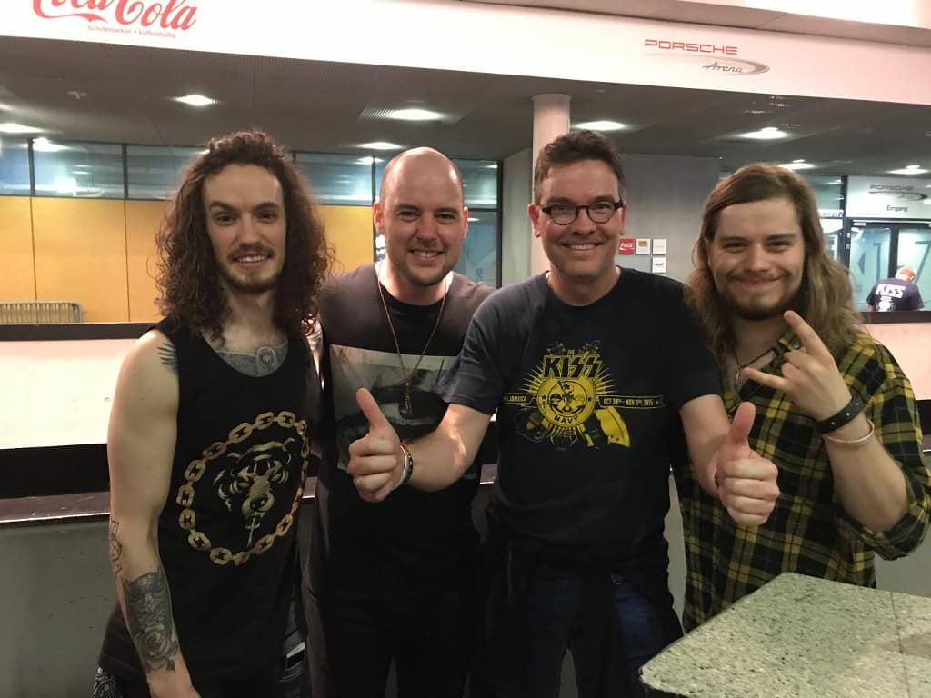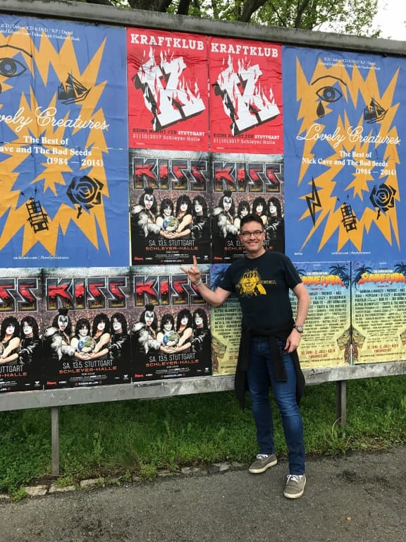 Goedemorgen Dortmund, op naar Stuttgart! Na het ontbijt nemen we afscheid van Sander, volgende keer gewoon meegaan! Silvy en ik knorren door naar Stuttgart. Kleine 400 km voor de boeg. Lekker weertje, onderweg nog ff stoppen om de teenslippers aan te doen……. In Stuttgart aangekomen, kunnen we in eerste instantie ons hotel niet vinden, rondje en opnieuw die straat in. Wellicht waren we op zoek naar een groot gebouw? We slapen in Hotel Discovery, klein familie hotel. Na de opfrisactie, op naar de zaal. Daar is vast ook iets te happen en te drinken? We liggen ongeveer een km wandelen van de zaal vandaan. We belanden aan bij Palm Beach, leuke tent die bomvol zit met KISS fans deze middag. Ze hebben er (uiteraard) Weissners van het vat, yep lusten we! Proost, op een nieuw KISS avontuur. We komen KISS Kruiser Kenneth nog tegen, oftewel BE meets NL in Germany. Een leuke familie, die KISS Army! Het feestje vanavond is te doen in de Hanns Martin Schleyer Halle, opnieuw een sold out show!