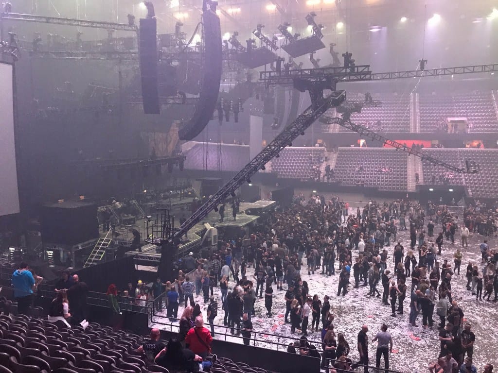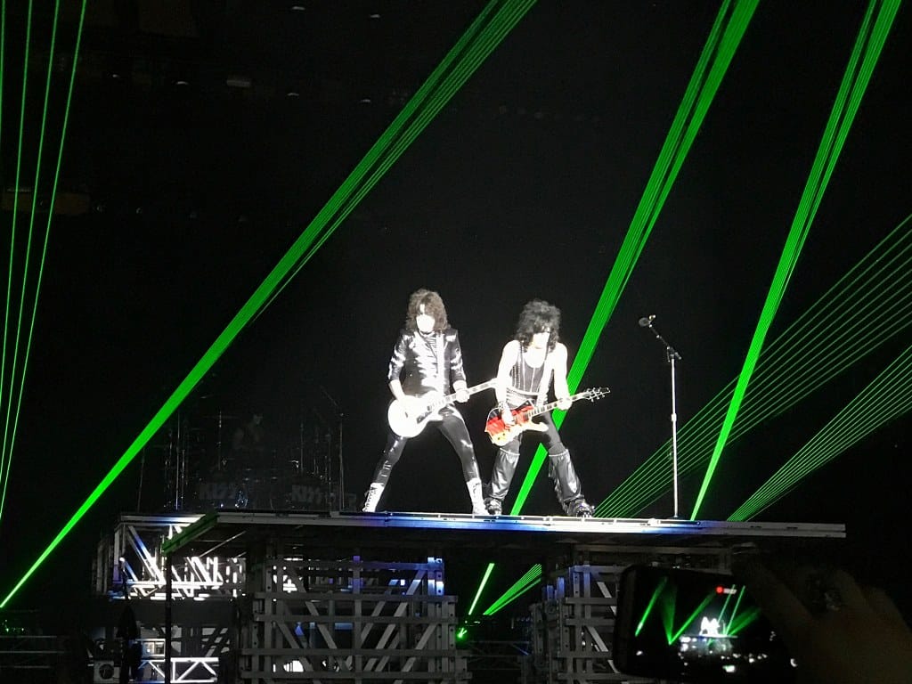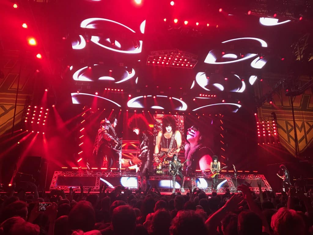 Vak Ai, rij 6. Hoppa, we mogen weer…… Show nummer 5 van KISS world 2017 kan beginnen! Mijn 49ste KISS concert is aanstaande! We starten weer op tijd, om 19.50 uur gaan de zaallampen al uit. De beurt aan Raveneye. Voor hun de laatste show als support van deze KISS tour, in Engeland en Schotland wordt dit overgenomen door The Dives. Bandje van Evan Stanley, de zoon van…… Bye Bye Raveneye, vijf keer lekker genoten van jullie muziek! Tot op de KISS KRUISE VII?