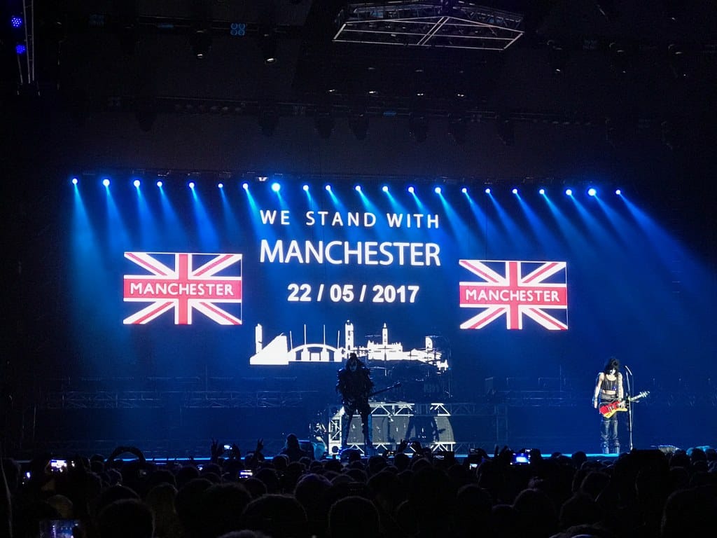 Na Shout it out loud, roept Paul Stanley op tot een minuut stilte! Op een enkeling na (Klootz**) is het muisstil! Kippenvel! Geweldig dat ze op deze wijze stilstaan bij de gebeurtenissen in Manchester tijdens het concert van Ariana Grande.