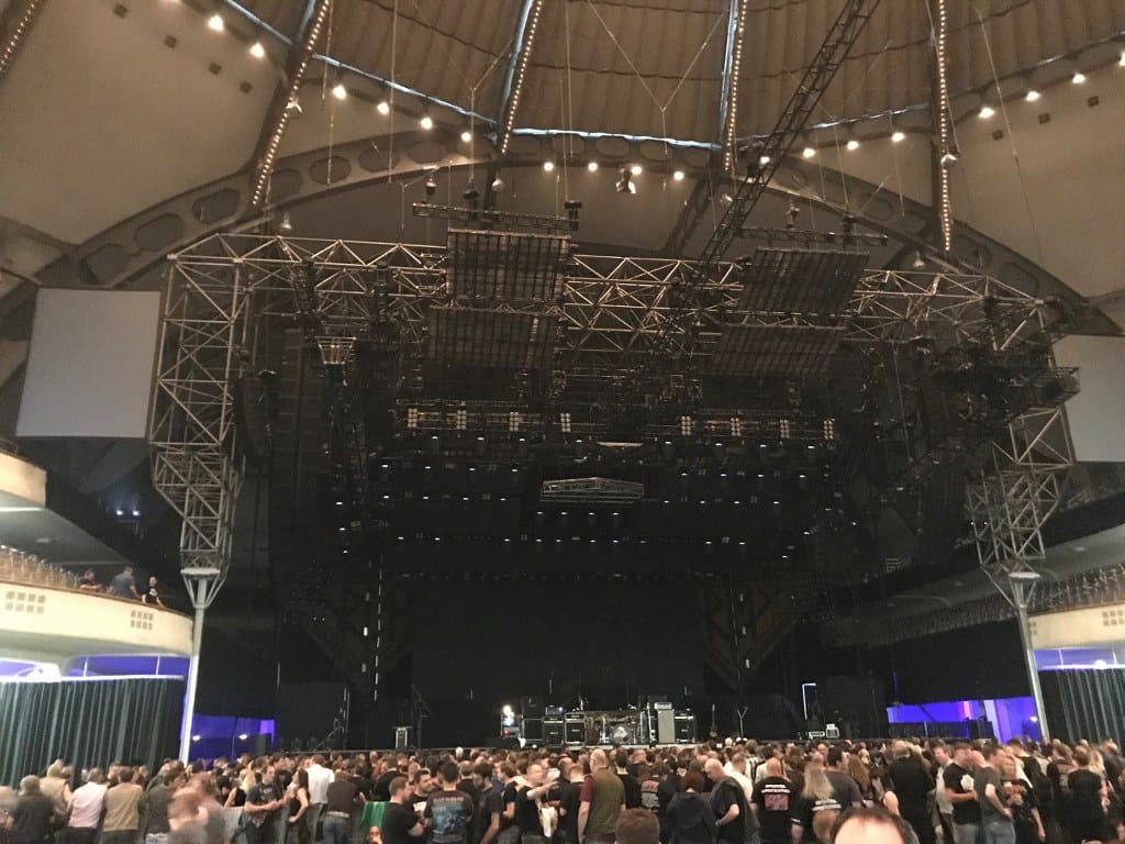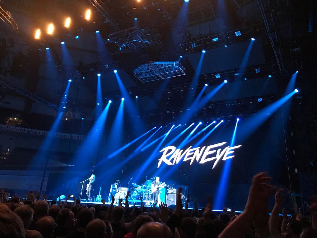 Na deze gave dag in München centrum, ff opfrissen en omkleden voor het avondprogramma. Waar moest ik deze avond ook alweer heen? Met de metro op naar het Olympia park. En in de biergarten nabij de hal toch nog maar een Weissner drinken. Ik heb nog ff afgesproken met Arjan en Brenda uit Dordrecht, die waren al naar de twee concerten in Italië geweest. Leuk hun weer eens te ontmoeten, was alweer lang geleden! Maar goed, KISS familie ben je forever. Daarna is het tijd om de zaal eens van binnen te gaan bekijken! Hello Olympiahalle! Wat direct opvalt is dat er geen ring is, dus gewoon staan waar je wilt. Ik kom dichtbij het podium, wellicht iets te dichtbij? We zullen zien. Tevens zie ik voor het eerst deze tour de volledige show. In Dortmund en Stuttgart hongen 4 screens in de lichtshow, hier 13. Dit is de volledige KISSworld2017 show, yes! Wellicht dat in de andere zalen, waar ik was, de constructie deze belasting niet toeliet? In Moskou, Helsinki en Oslo was ook de volledige show aanwezig, hier nu dus ook. Dat wordt extra genieten. Show nummer 3 van KISS world 2017 kan beginnen! Mijn 47ste KISS concert is aanstaande! Yep, Raveneye mag om klokslag 20.00 uur weer aftrappen.