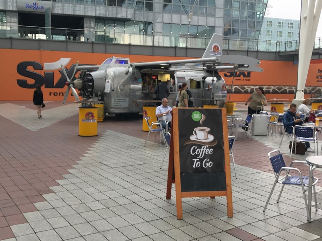 Ik lunch in de biergarten van de Arena, broodje en koffie. Het stadion bevindt zich een behoorlijk eind buiten het stadscentrum, dus goed dat er in het stadion een eet- en drinkgelegenheid is, zoveel heb ik rondom het stadion niet kunnen ontdekken. Een gaaf stadion, blij dat ik dit aan mijn KISS trip in München heb toegevoegd. Zo zie je maar, KISS brengt je niet alleen de muziek maar ook naar bijzondere plaatsen! Op naar de luchthaven met lijn S1, S8 kan overigens ook! Laat op de middag kom ik aan op de Airport van München, nog ff een drankje en een hapje en wat bloggen.