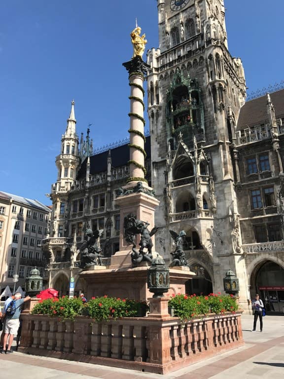 Te voet gewandeld naar Marienplatz, dat is immers het hartje van het centrum. Een bijzonder leuk en gaaf plein, goed weer dus het is er lekker druk en gezellig. Plotseling zie ik een bekend rood fenomeen, CitySightseeing bus. Duurt een uur zegt de chauffeur me, uiteindelijk ben ik hier ook niet lang dus een goed alternatief om München te bekijken.