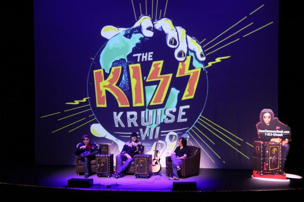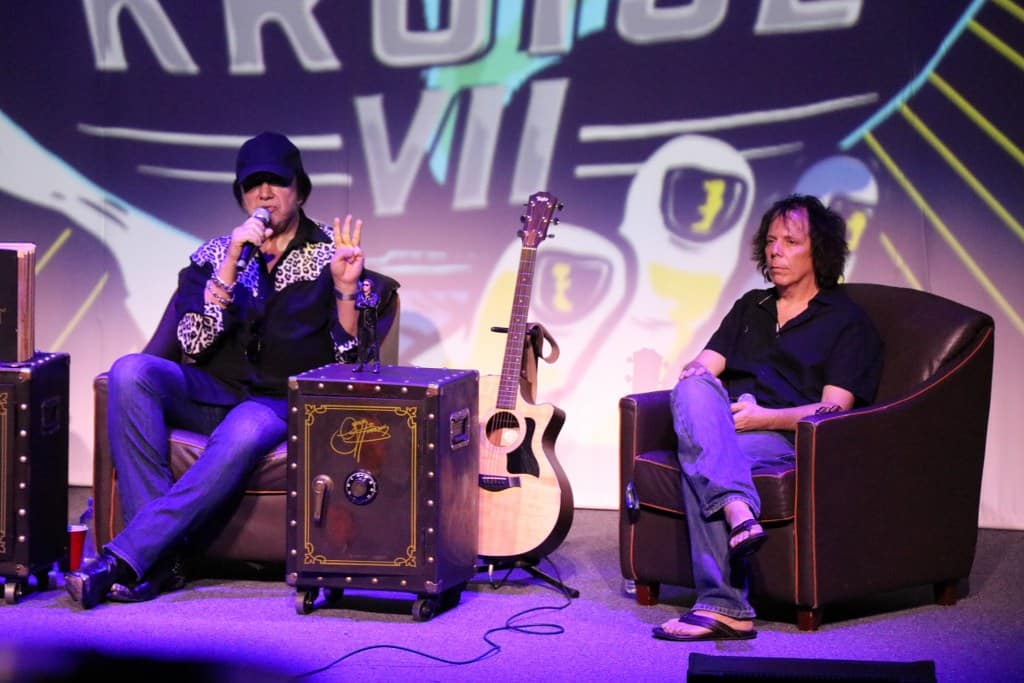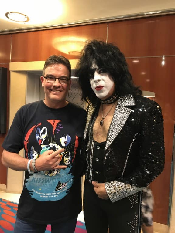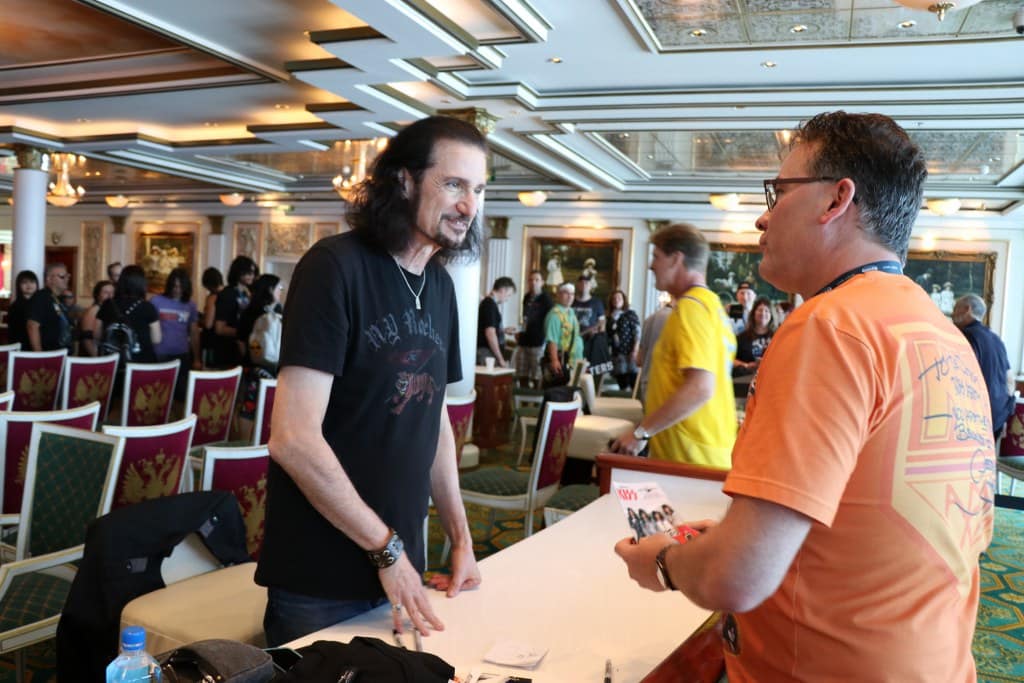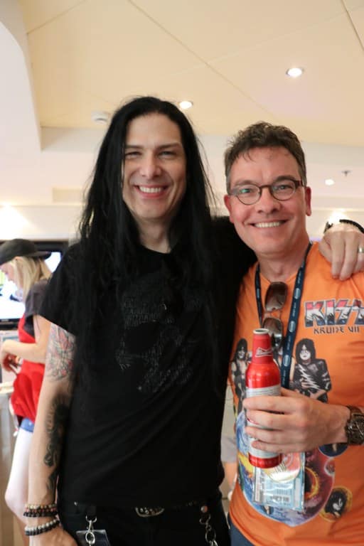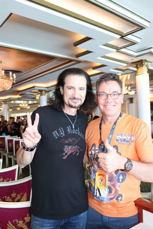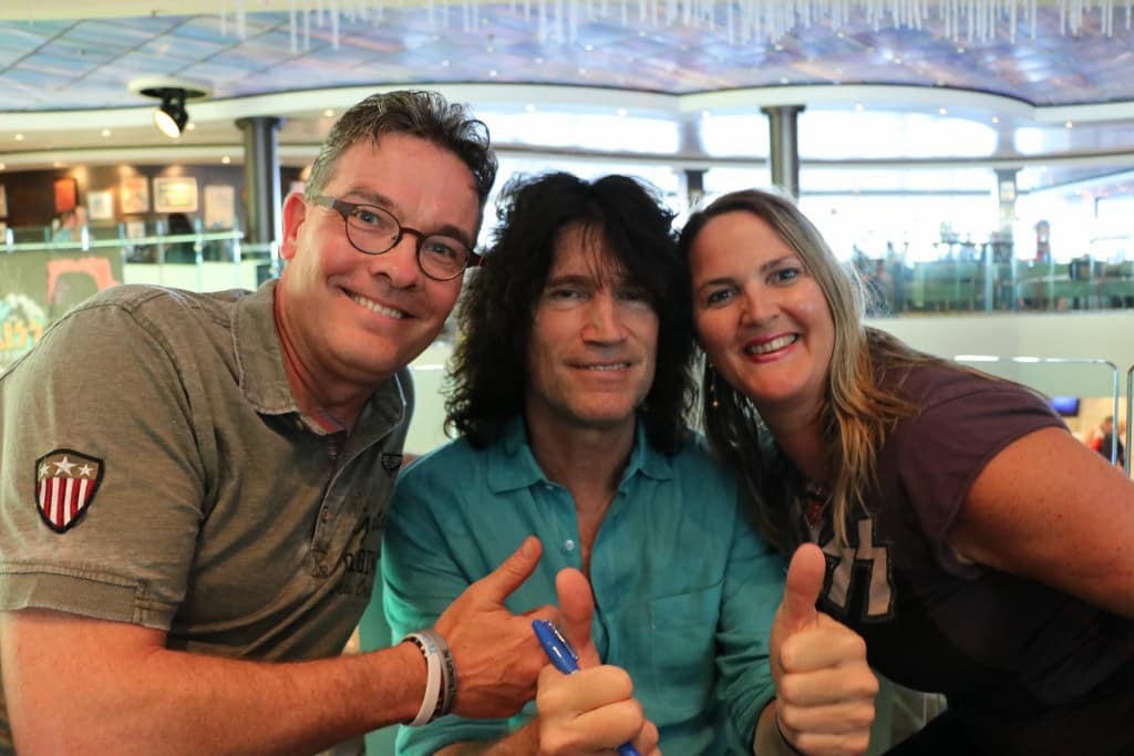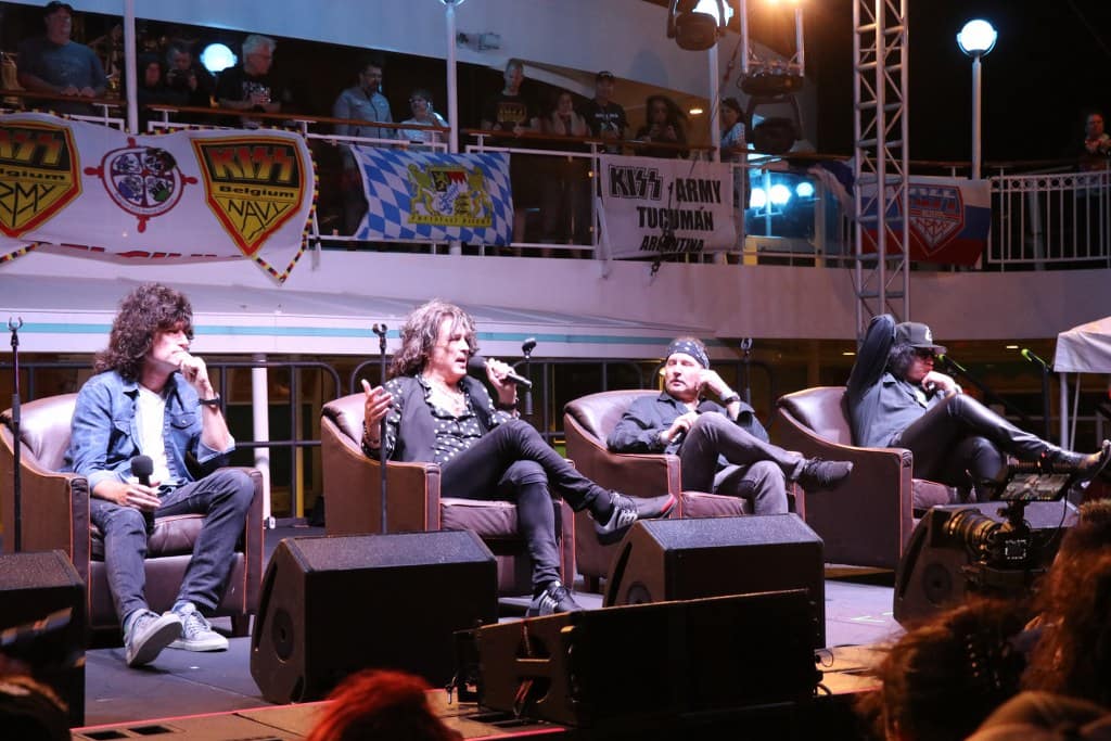 6 november: GOEDEMORGEN KISS KRUISE VII, ergens op zee! Een drukke Kruise dag op het programma. We starten de dag met een ontbijtje op eigen balkon, lang leve de Room Service (baby I can use a meal…….). Daarna op naar het pooldeck voor het KISS World Konfidential Panel with Bruce Kulick, Bob Kulick, “Big” John Hart, Michael James Jackson en Lydia Criss. Gaaf om met name Bruce zijn verhalen te horen over zijn toetreden tot KISS. In de periode van 1984, toch hij op tour ging met KISS, in plaats van Mark St. John, kende niemand Bruce. Er was toen geen facebook, instagram, twitter e.d. dus “wie is die man daar op het podium”? “Nieuws” kwam vaak pas weken nadien, via bladen e.d. bij de mensen. In eerste instantie zou hij tijdelijk Mark St. John vervangen. Echter Bruce kan het telefoongesprek met Paul nog goed herinneren toen hij hem belde om te vertellen dat hij definitief “in the band” was. Uiteindelijk werden dit 12 jaar! Dit zijn jaren om trots op te zijn, meld Bruce ons. Veel geleerd van de band, van Gene en Paul e.d. Bruce is trots dat hij een onderdeel heeft mogen zijn van de KISS familie, iets waarmee hij nog dagelijks te maken heeft middels interviews, berichten, social media e.d. Eerlijk is eerlijk als ik mijn persoonlijke mening geef was de Revenge tour en bezetting van KISS nog steeds de beste! En HELL YEAH Bruce was er in die tijd bij!! Love it!
