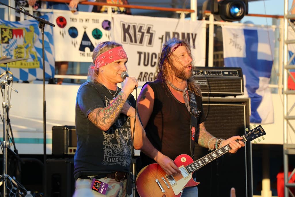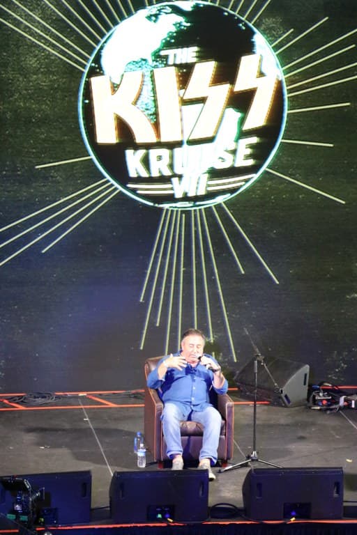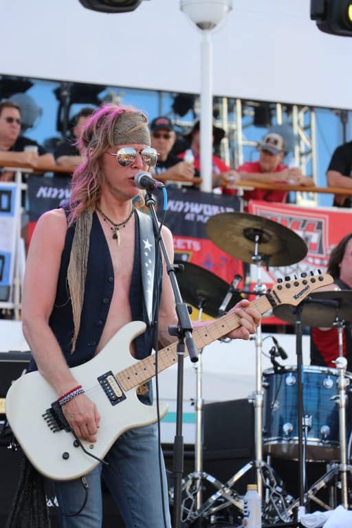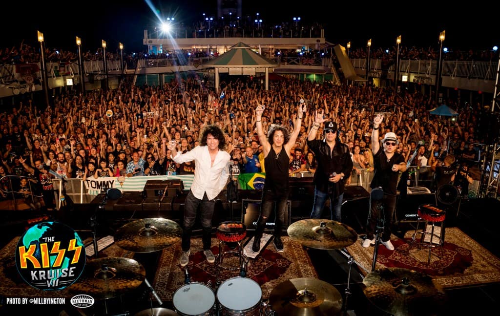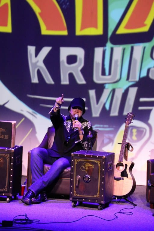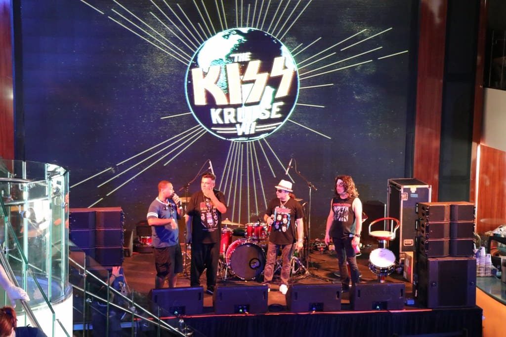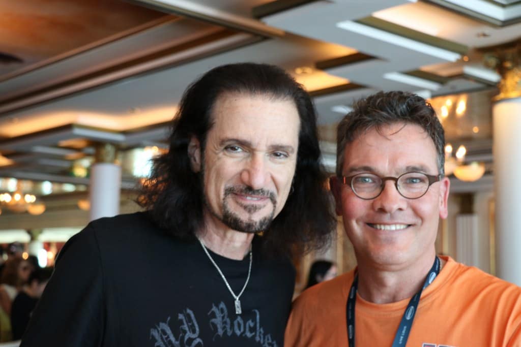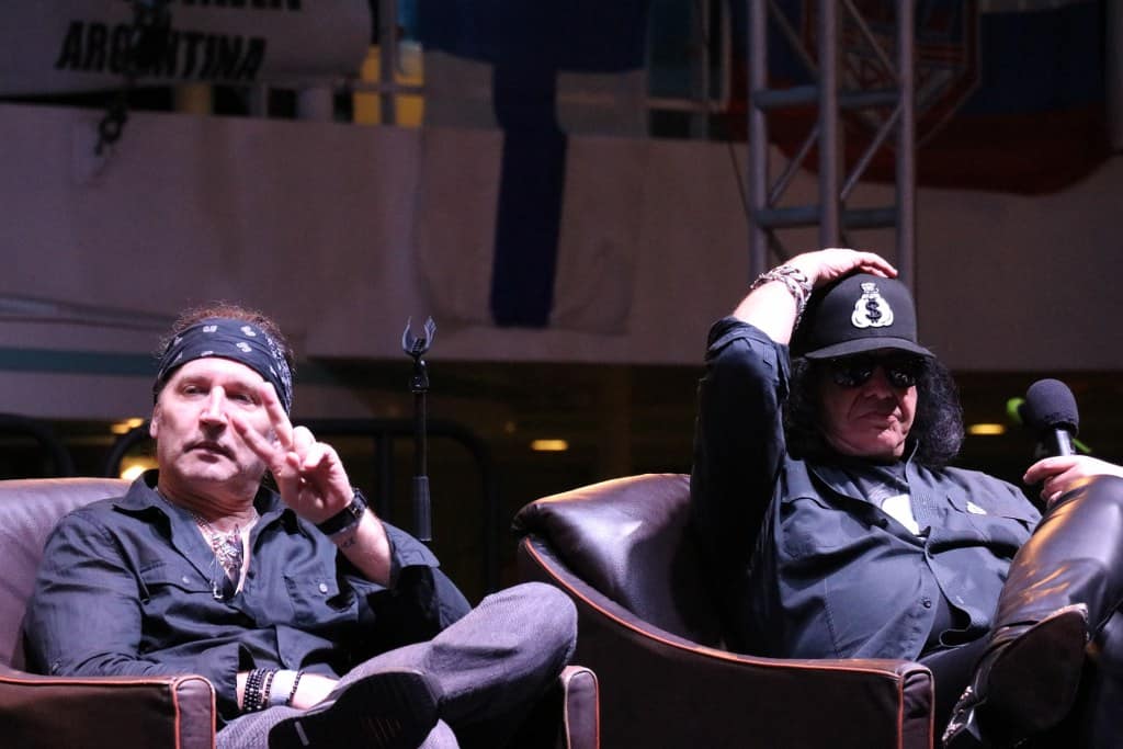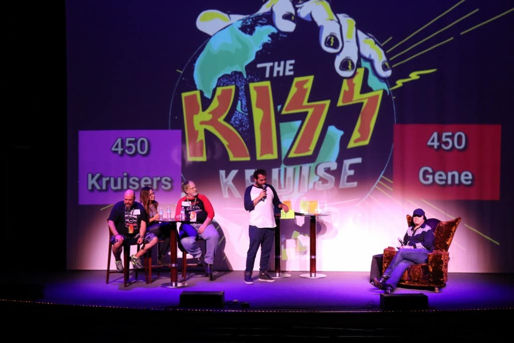 6 november: GOEDEMORGEN KISS KRUISE VII, ergens op zee! Een drukke Kruise dag op het programma. We starten de dag met een ontbijtje op eigen balkon, lang leve de Room Service (baby I can use a meal…….). Daarna op naar het pooldeck voor het KISS World Konfidential Panel with Bruce Kulick, Bob Kulick, “Big” John Hart, Michael James Jackson en Lydia Criss. Gaaf om met name Bruce zijn verhalen te horen over zijn toetreden tot KISS. In de periode van 1984, toch hij op tour ging met KISS, in plaats van Mark St. John, kende niemand Bruce. Er was toen geen facebook, instagram, twitter e.d. dus “wie is die man daar op het podium”? “Nieuws” kwam vaak pas weken nadien, via bladen e.d. bij de mensen. In eerste instantie zou hij tijdelijk Mark St. John vervangen. Echter Bruce kan het telefoongesprek met Paul nog goed herinneren toen hij hem belde om te vertellen dat hij definitief “in the band” was. Uiteindelijk werden dit 12 jaar! Dit zijn jaren om trots op te zijn, meld Bruce ons. Veel geleerd van de band, van Gene en Paul e.d. Bruce is trots dat hij een onderdeel heeft mogen zijn van de KISS familie, iets waarmee hij nog dagelijks te maken heeft middels interviews, berichten, social media e.d. Eerlijk is eerlijk als ik mijn persoonlijke mening geef was de Revenge tour en bezetting van KISS nog steeds de beste! En HELL YEAH Bruce was er in die tijd bij!! Love it!