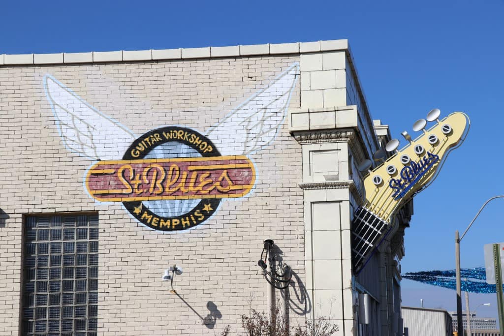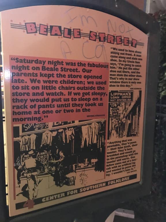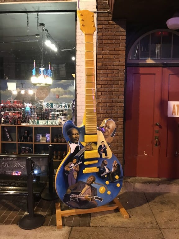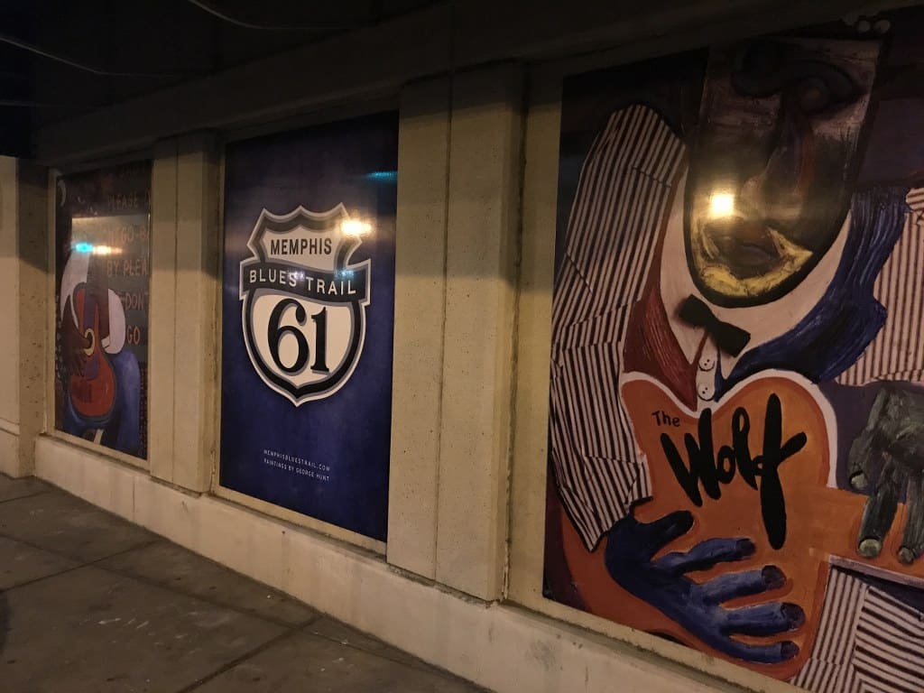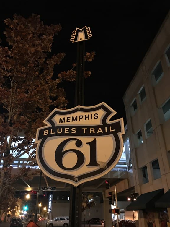 Beale Street – Home of the Blues. Hier is het te doen qua uitgaan, eten e.d. in Memphis. Deze weg (US 61) heeft ons van New Orleans naar Memphis gebracht, een prachtige route. Hier opgesteld als een markeringen, want de route loopt hier niet.