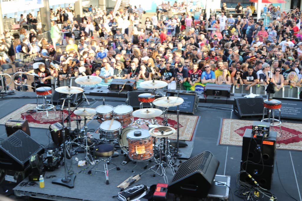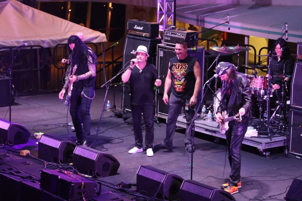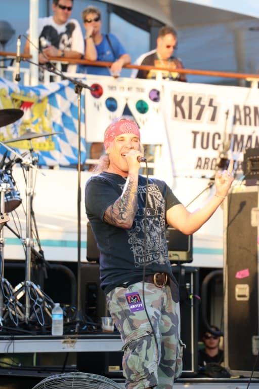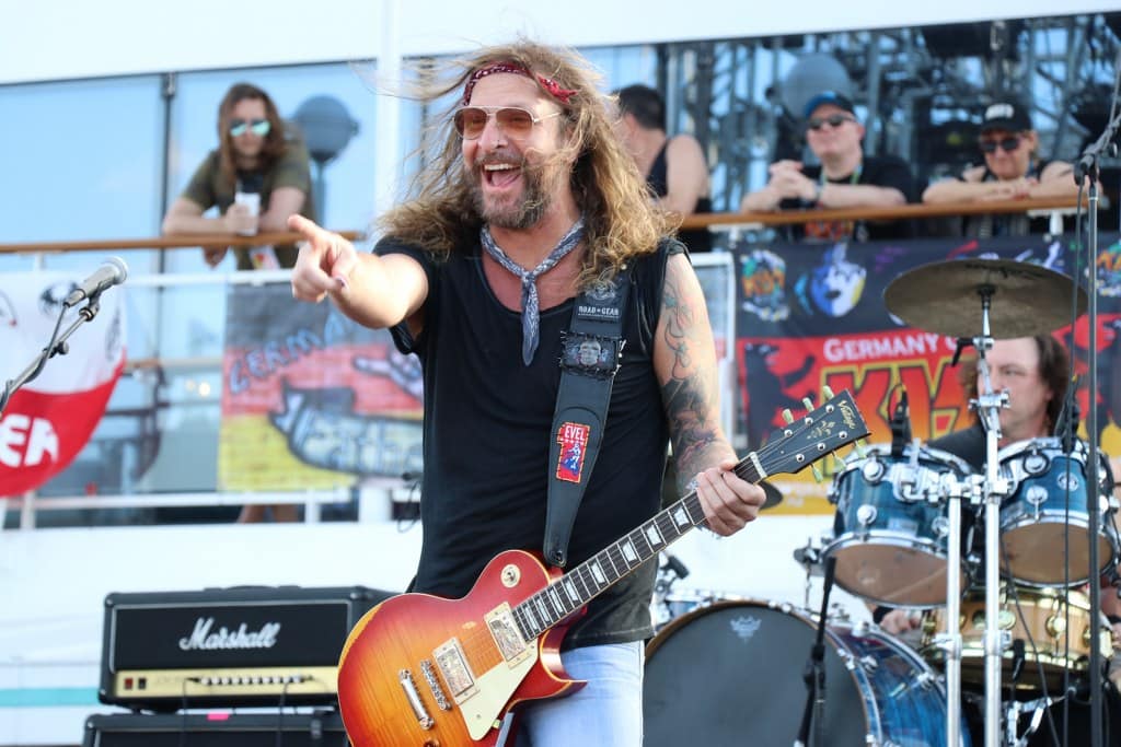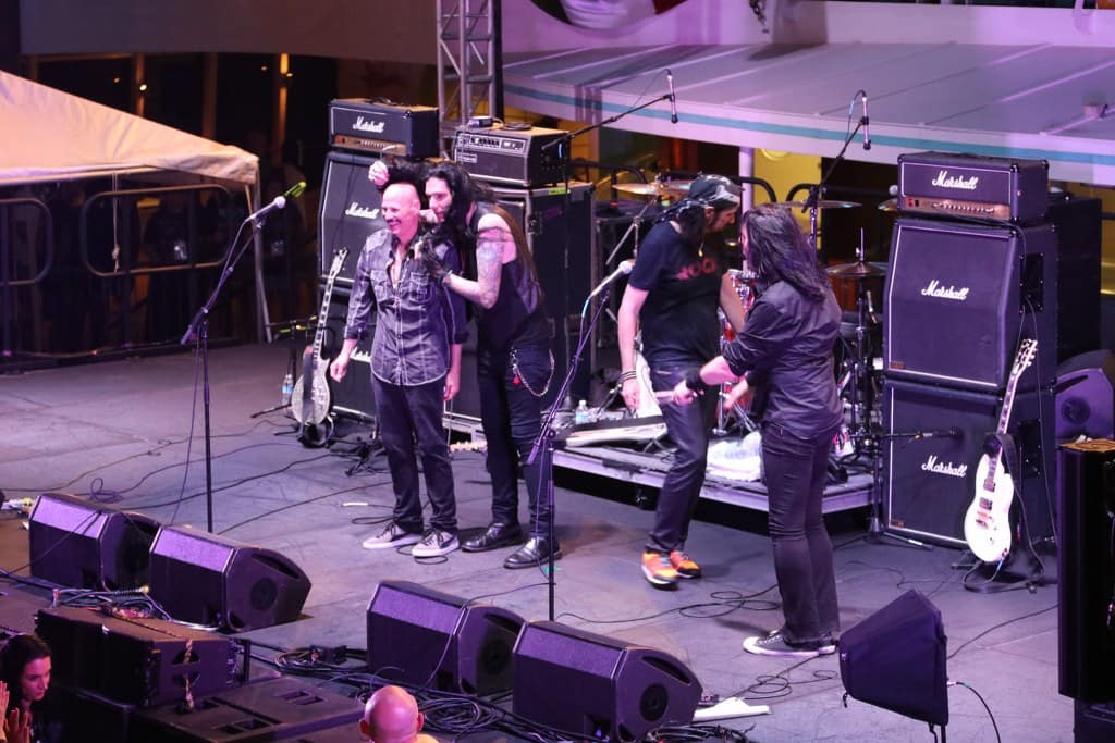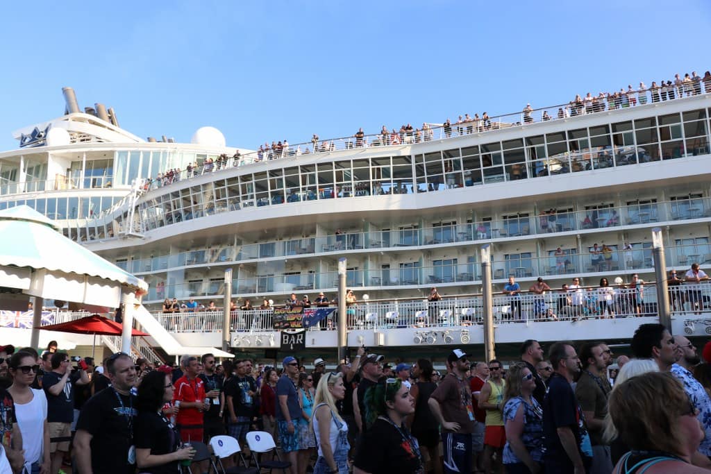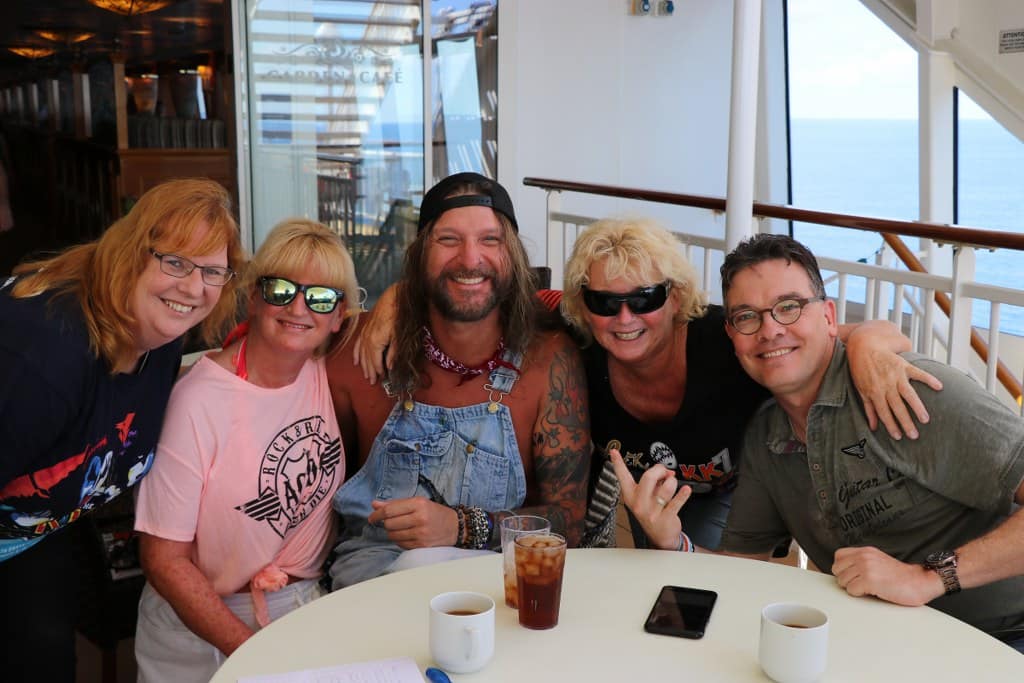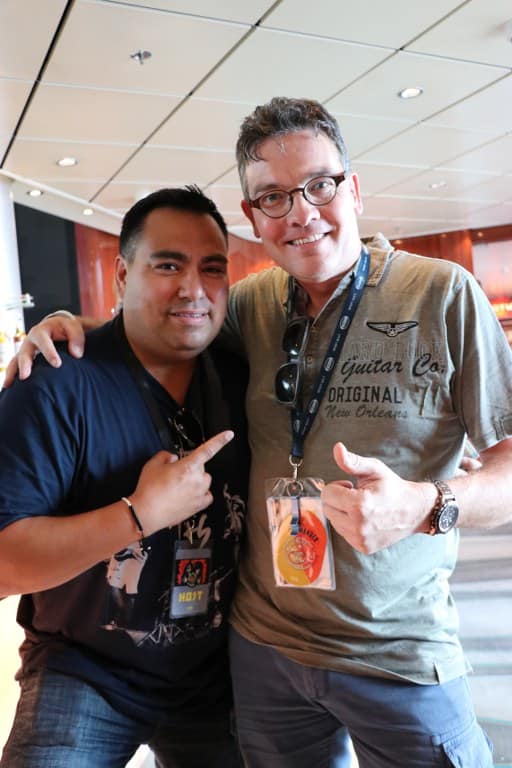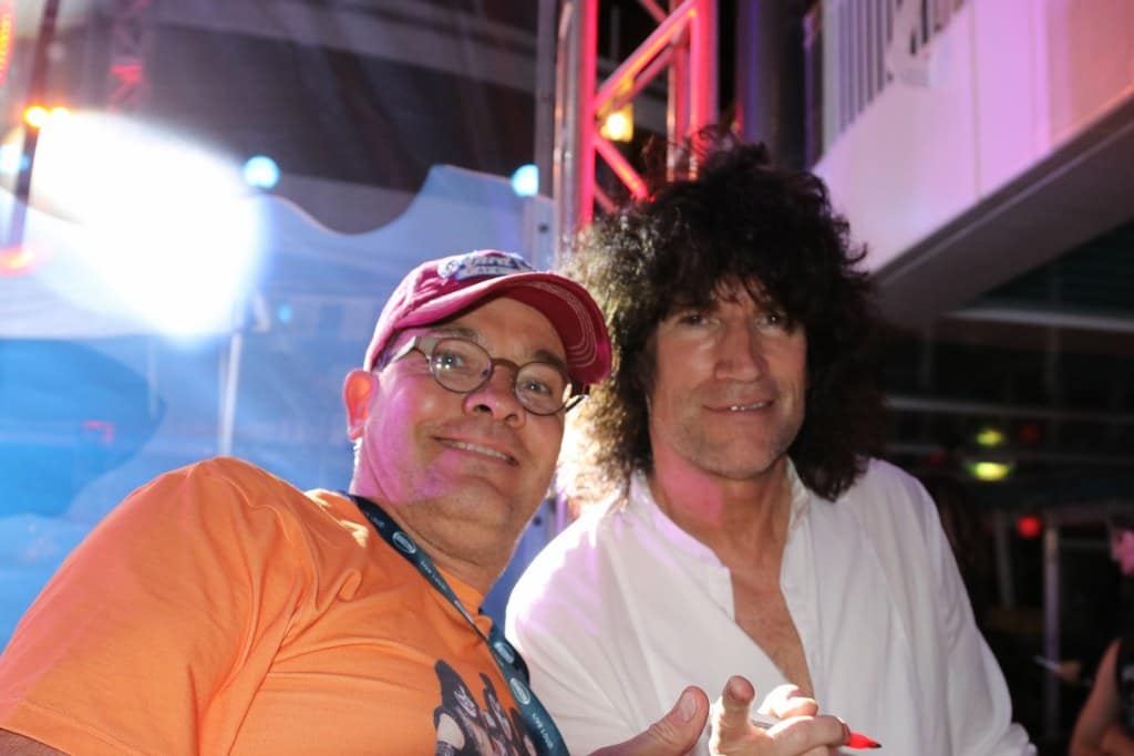 Yep, als de Oasis of the Seas langs the Pearl ligt, is de “onze” maar een bootje! Rond 16.30 uur zetten we weer koers richting New Orleans. Inmiddels heeft Extreme het podium betreden, dus we hebben extra publiek. De Oasis of the Seas komt kijken, die weten dus echt niet wat ze zien! Extreme zet een gave set en goed optreden neer. Deze band heeft even tussen de mottenballen gezeten maar staat weer als een huis. Snarenplukker Nuno Bettencourt is een meester en Gary Cherone heeft de tand des tijds zeker doorstaan. Top optreden met alle bekende Extreme klassiekers er in! Naderhand nog ff met de bezwete Gary op de foto!