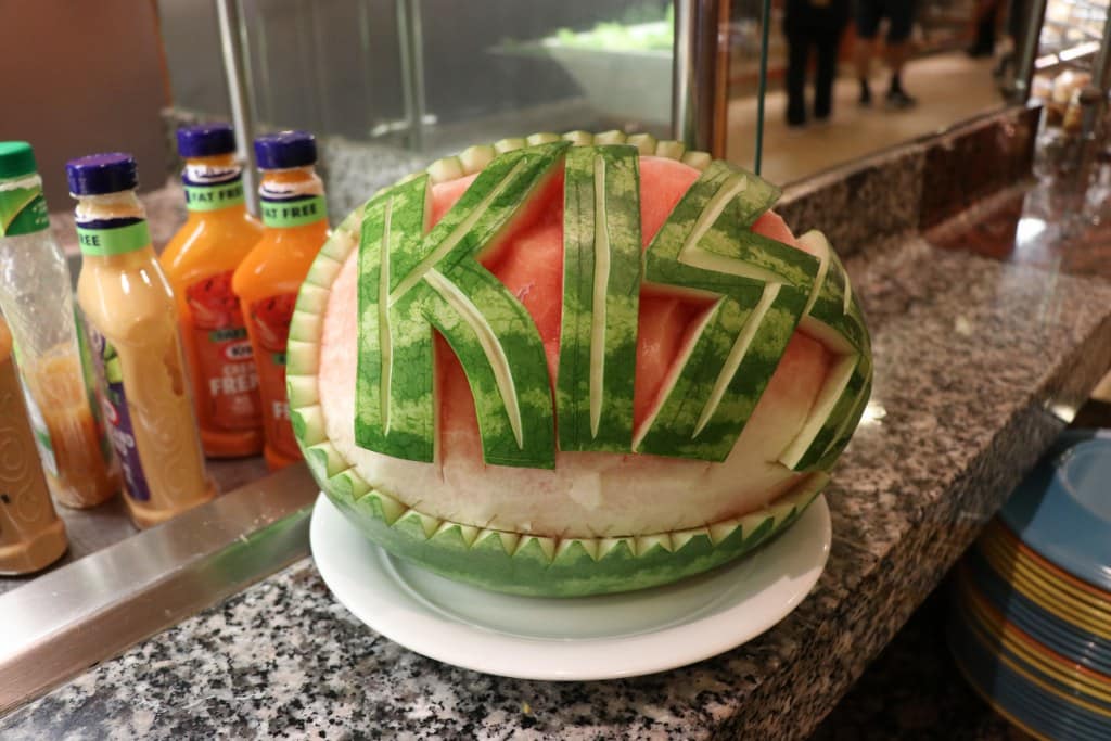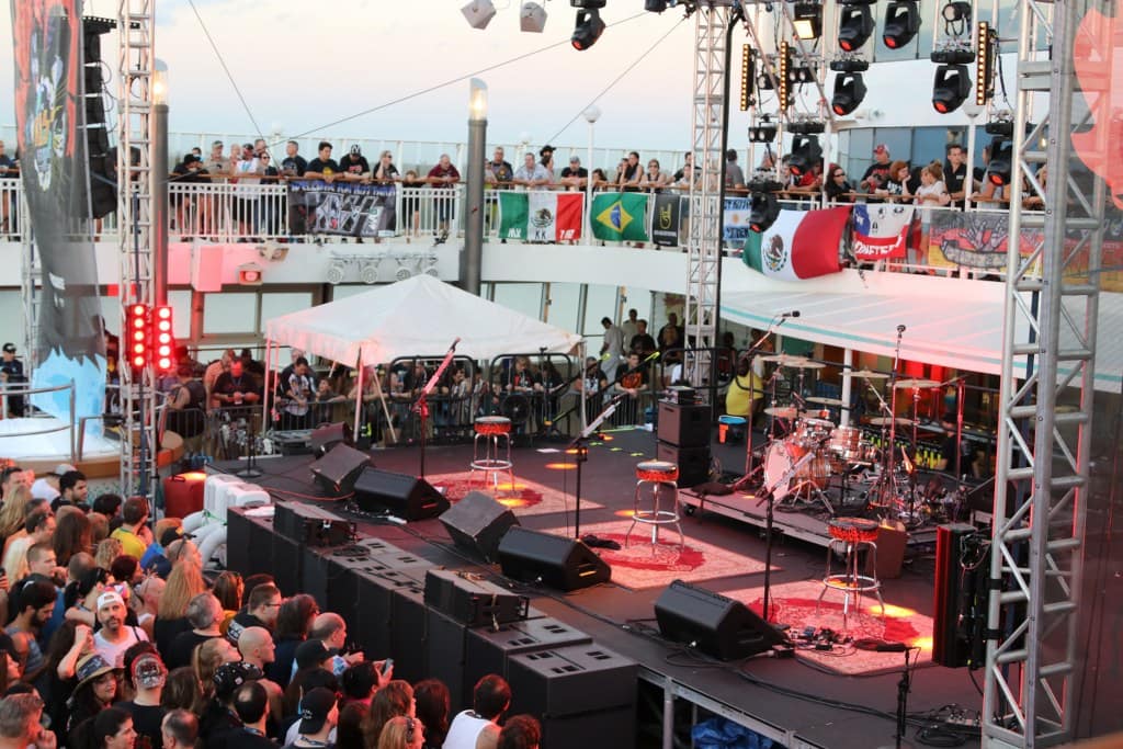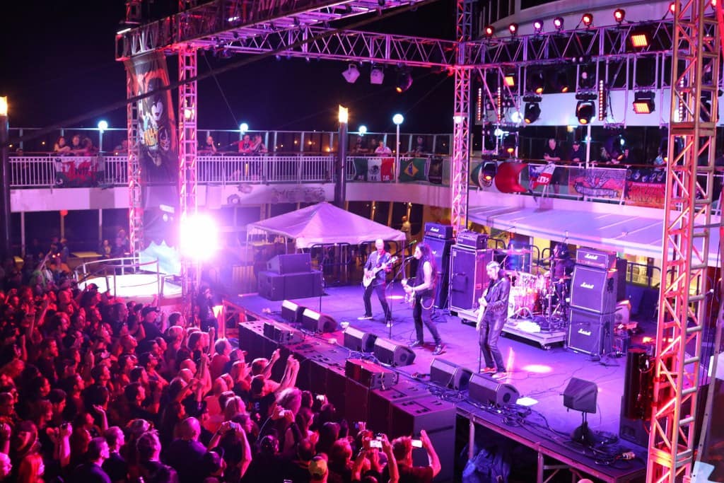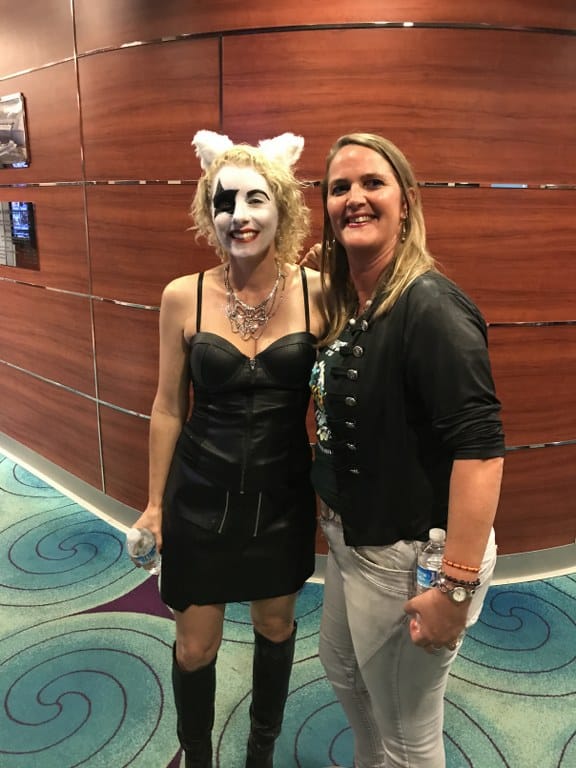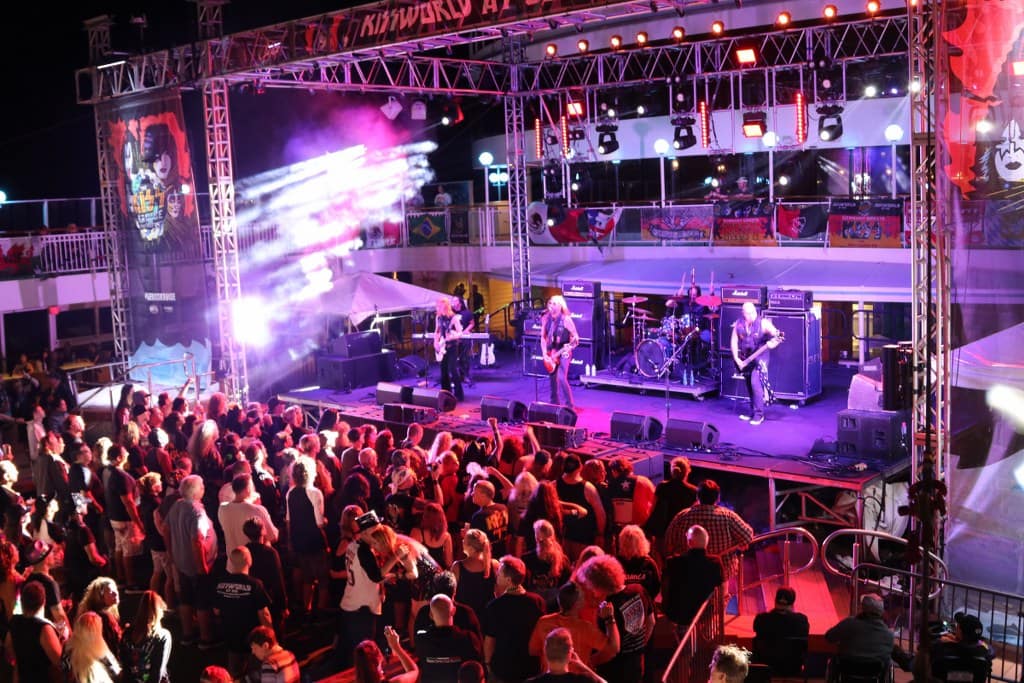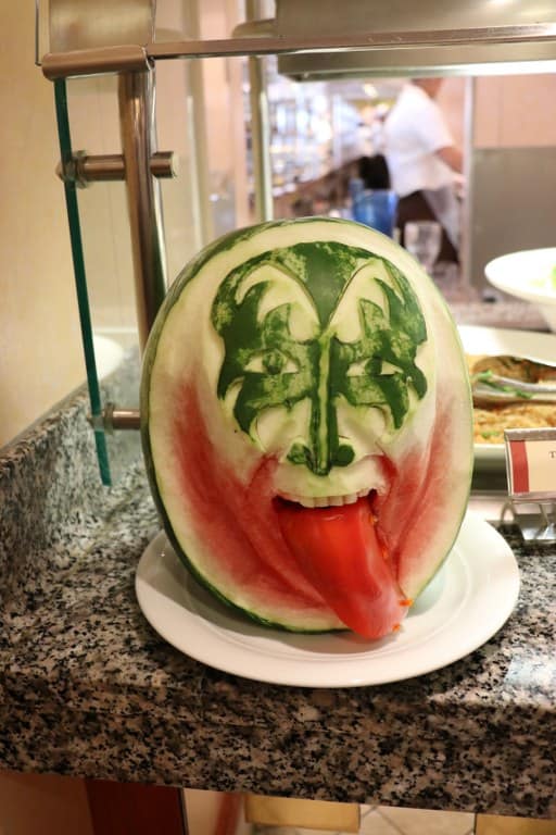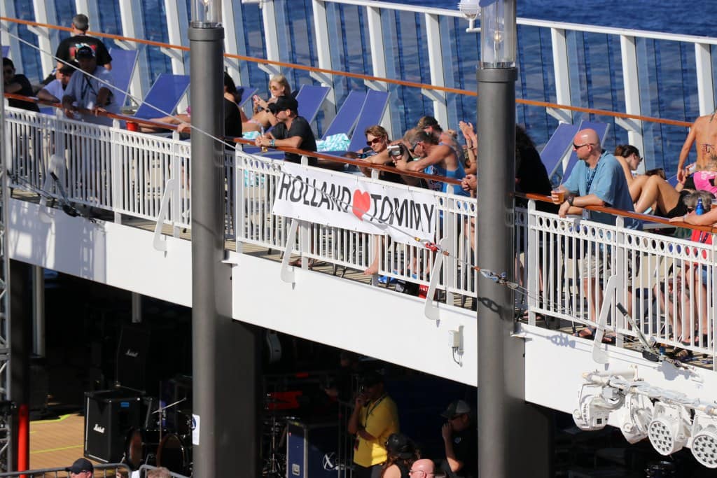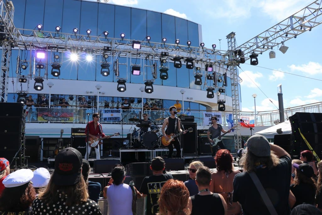 Aansluitend hebben we nog de Q&A op het pooldeck. KISS heeft er zin in want het is echt lachen geblazen. Die komiek George Lopez zat er ook bij maar die verziekte alles, naderhand las ik dat Doc hem heeft laten verwijderen van het podium. En terecht! Ook dit jaar horen we weer leuke anekdotes en serieuze opmerkingen van de heren. Eric’s foto’s van Gene op zijn schmink case! Leuke momenten uit verleden. In Italie hebben ze het beste eten. Enz enz.