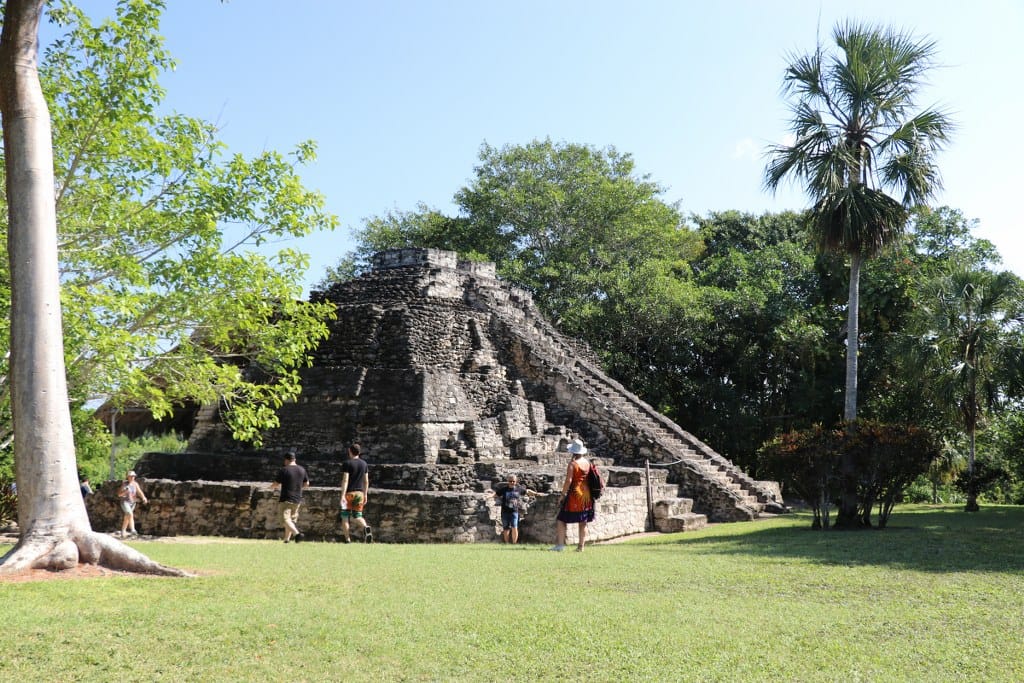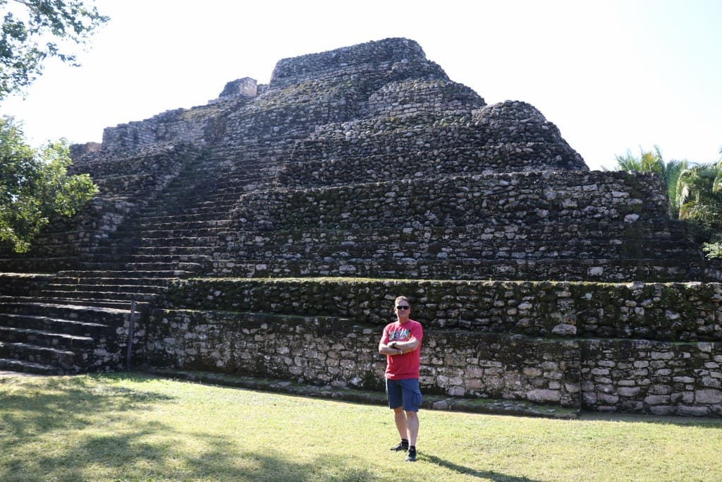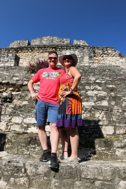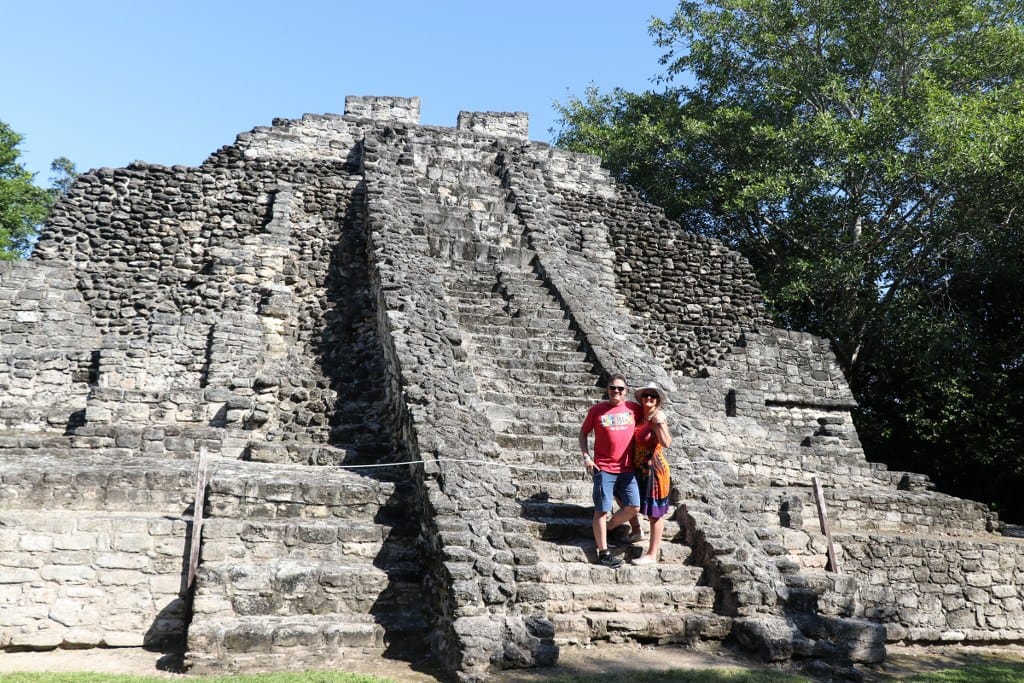 8 november: GOEDEMORGEN vanuit Costa Maya! Ook deze ochtend weer ontbijt tegen 07.00 uur want om 08.15 uur worden we op de pier verwacht voor onze excursie naar de Mayan Ruins. We gaan de Mayan Ruins in Chacchoben bezoeken. Dik uur rijden vanuit de Cruiseterminal. Gelukkig in een geconditioneerde bus, want het is echt bloedheet vandaag! Erg bijzonder dat we die Maya cultuur eens kunnen gaan bekijken, veel over gehoord en gelezen maar nooit van zo dichtbij mogen aanschouwen! Zo’n KISS KRUISE is veel muziek e.d. maar de bezochte locaties voegen natuurlijk ook veel toe aan zo’n tripje. Bij de Ruines aangekomen valt direct op dat deze nog in goede staat zijn.