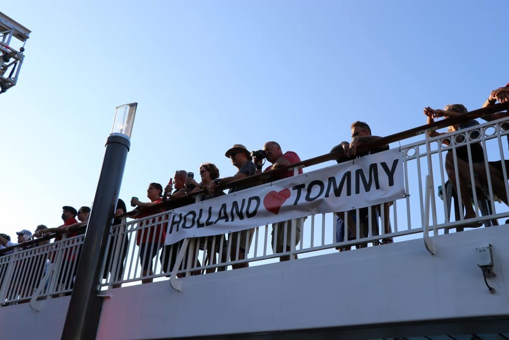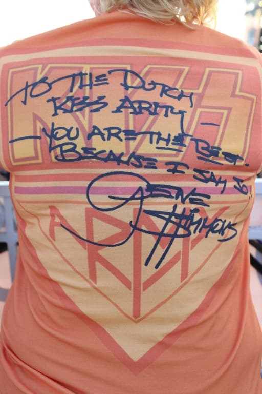 Deze avond staat ook weer in het teken van de KISS groepsfoto. Ondanks dat ik dit al drie keer eerder heb gedaan blijft dit toch ieder keer weer een spannend momenten merk je dat iedereen toch wel wat nerveuzer wordt zodra je wat dichterbij komt. Zodra wij aan de beurt zijn, vraag ik direct aan Gene “will you grap me”. Hoe de foto er uit komt te zien weet ik nu (7 november) nog niet, wordt vervolgd. Feit is dat Uncle Gene mij zowat fijn kneep. Nog ff enkele fistbumps en Tommy moest lachen toen ik hem nogmaals vertelde “Tommy Holland loves you”.