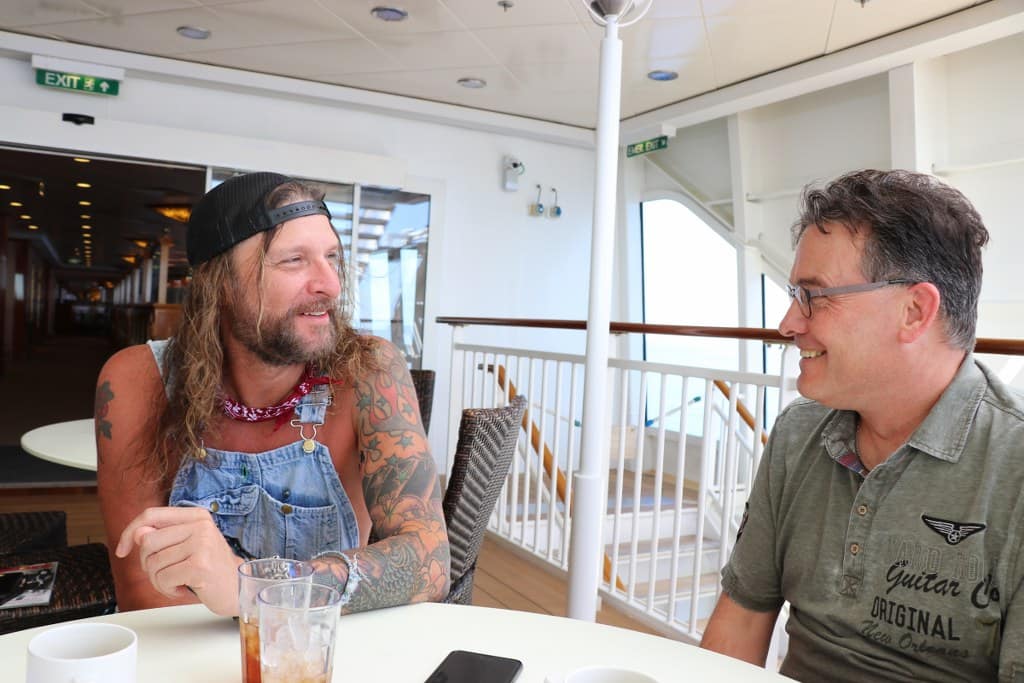 Daarna snel naar het Atrium want daar is Ask Doc. Doc MacGhee is al jaren de manager van KISS en heeft altijd leuke verhalen en nieuwtjes rondom KISS. Ook dit keer is het weder smullen met Doc. Naderhand confronteren we Doc nog met de Aardschok, met op de voorzijde KISS, foto gemaakt door Stefan Schippers in Ahoy Rotterdam. Doc kan zich dat moment nog goed heugen, daar Stefan ongeveer 45 seconde had voor zijn shoot. Eric Singer komt ook nog even aanwandelen, yep alles kan op de KISS KRUISE.