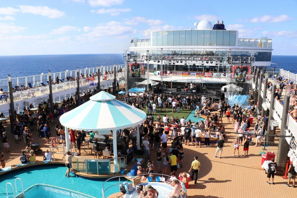 9 november: Goedemorgen vanuit de Golf of Mexico. Vandaag is het “op zee dag”, morgenochtend zijn we weer terug in New Orleans! Na het ontbijt starten we de dag met The Dives op het pooldeck. Het schema is vandaag geheel op zijn kop gezet, kennelijk krijgen we vanmiddag regen en storm? Daarbij is gisterenavond de show van The Big Rock Show gecanceld vanwege te harde wind. Dus die moet er vandaag ook nog ergens tussen gepropt worden.