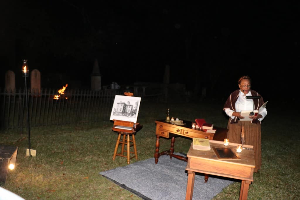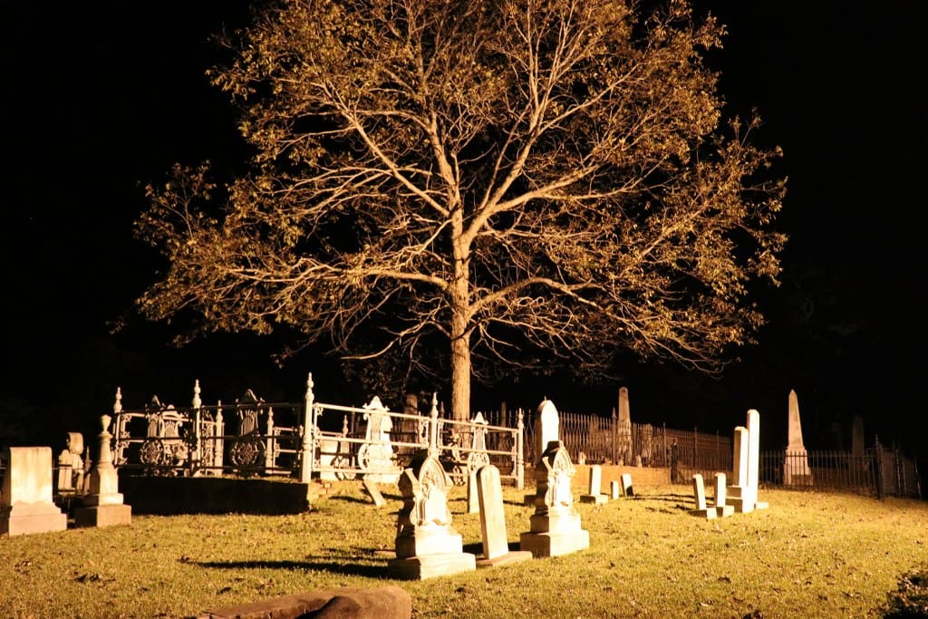 Dus snel naar de Mac Donalds en een flesje wijn want als we gebeld worden moeten we snel kunnen schakelen. Terug op ons Hotel gaat om 19.05 uur de telefoon, twee plaatsjes vrij om 19.15 uur, dus snel wegwezen. Angels on the Bluff is een kerkhof tour op een van de mooiste kerkhoven van de USA. Hierbij wordt bij een stuk of 10 graven een leuk verhaal verteld, voordracht gedaan, over de betreffende persoon/personen. Dit is jaarlijks drie dagen, dus wij hebben een beetje geluk. Wel gaaf om dit te mogen bijwonen, het is geen toeristische attractie maar echt een lokaal uitje, alhoewel mensen uit de gehele omgeving jaarlijks toestromen om dit evenement bij te wonen. Wij waren “first timers” zoals dat noemde, waar hebben we dat nog meer gehoord?