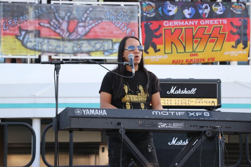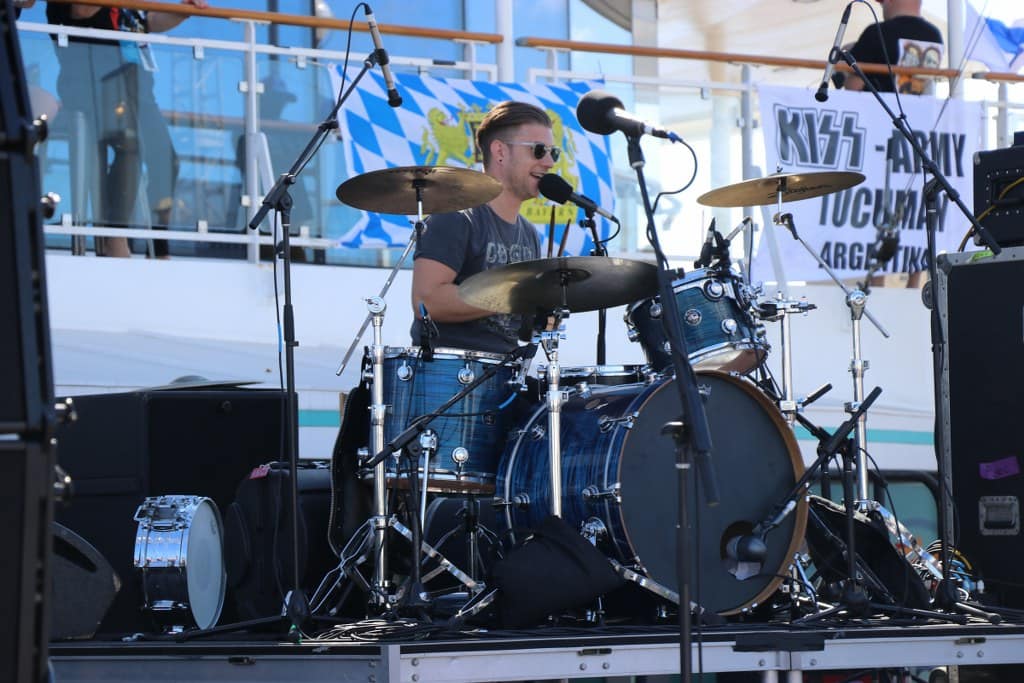 Daarna kort hapje, de maag begint te knorren met al deze activiteiten. Nog even naar “Name that solo” met Tommy Thayer. Een panel van Kruisers gaan de wedstrijd aan met Tommy, wie als eerste kan raden uit welk nummer de solo komt die Tommy ten gehore brengt. Dit levert leuke taferelen op en blijkt nog lang niet altijd zo eenvoudig te zijn. Humor op het pooldeck dus. Grace, my friend, since KISS KRUISE IV!