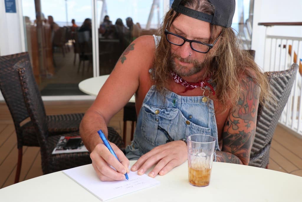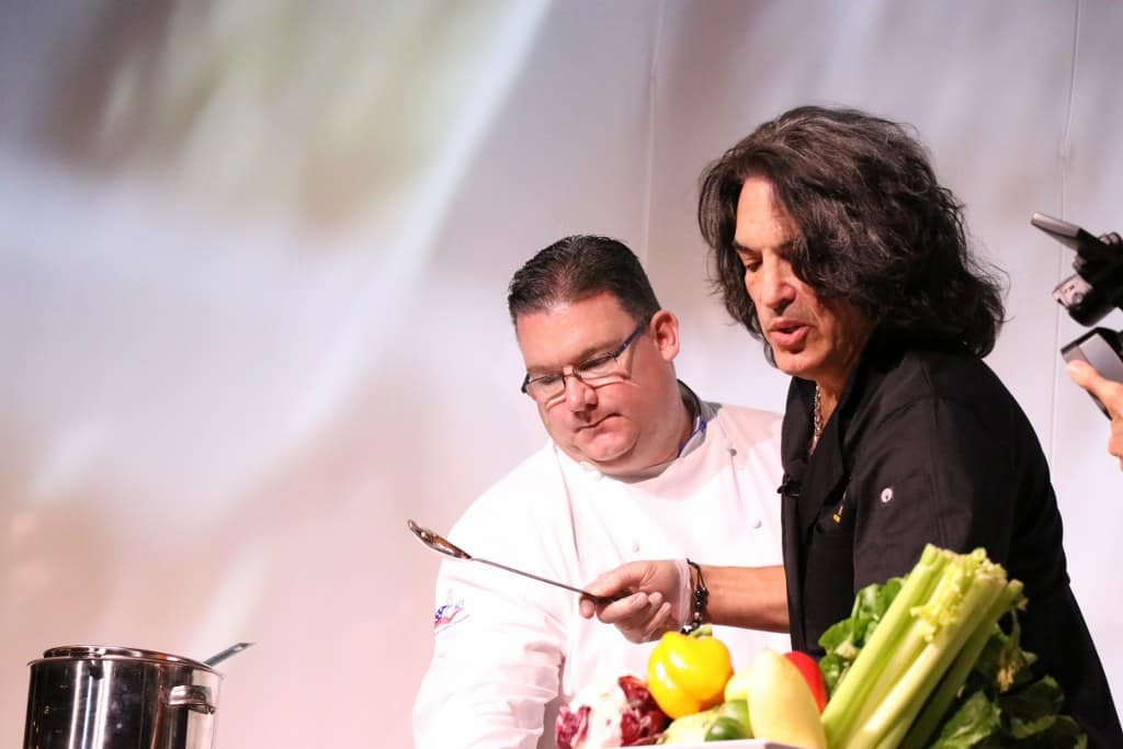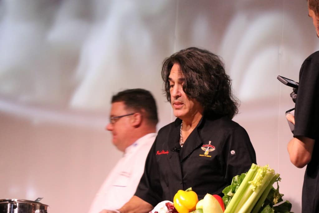 Door naar Paul’s cooking event in het Stardust Theater, we zijn daar al vroeg, 1 uur van te voren omdat we ook nog een handtekening willen scoren. Aangezien Gene’s Masterclass uitloopt moeten we zelfs ruim 1,5 uur wachten. Of de moeite beloond wordt moeten we nog maar afwachten…… Paul maakt een Cesar salad en een pasta. Leuk om allemaal te zien maar het gaat natuurlijk om Paul en zijn verhalen. Nieuw KISS album? Ooit, misschien maar waarom? Jullie willen toch allemaal exclusieve klassiekers horen. Soul Station gaat in 2018 ook weer optredens doen, waarom niet op KISS KRUISE VIII? Dat zou een goed optie zijn, aldus Paul. Volgend jaar op de KISS KRUISE kun je mee doen aan een painting workshop samen met Paul. Hij legt uit wat creativiteit met hem doet.