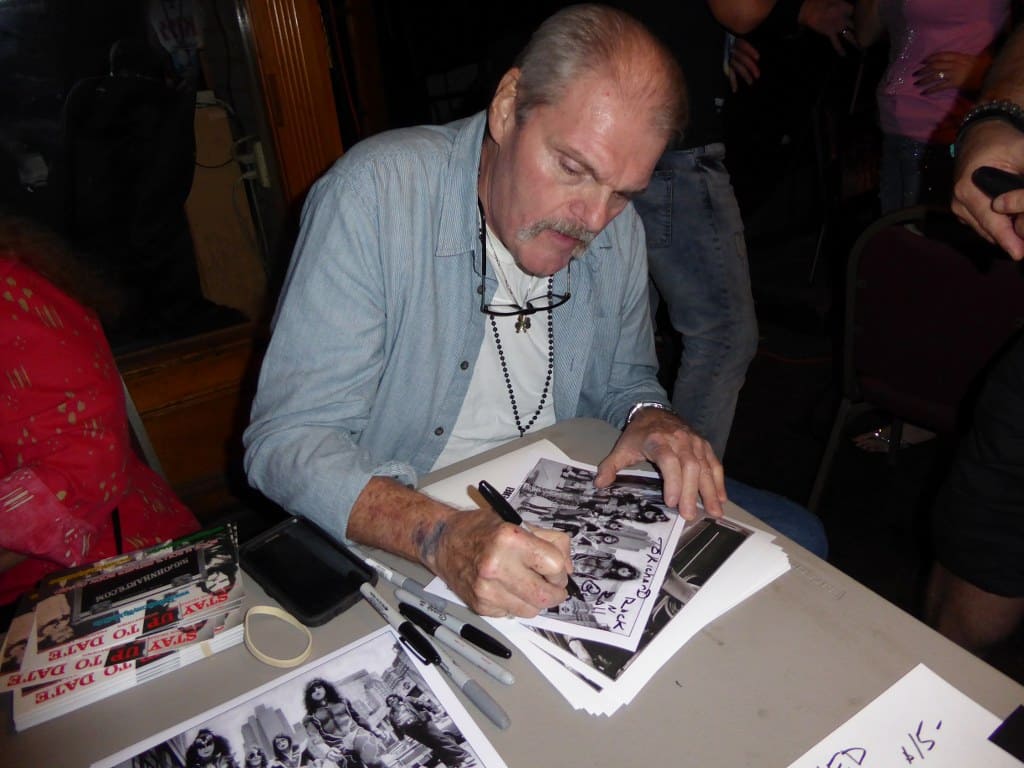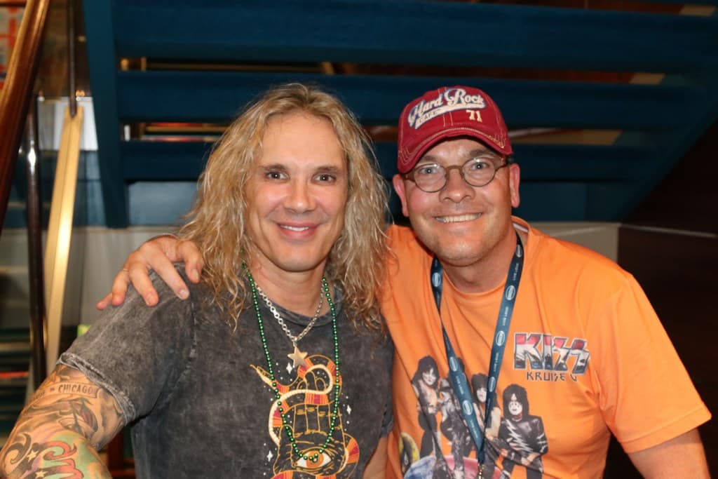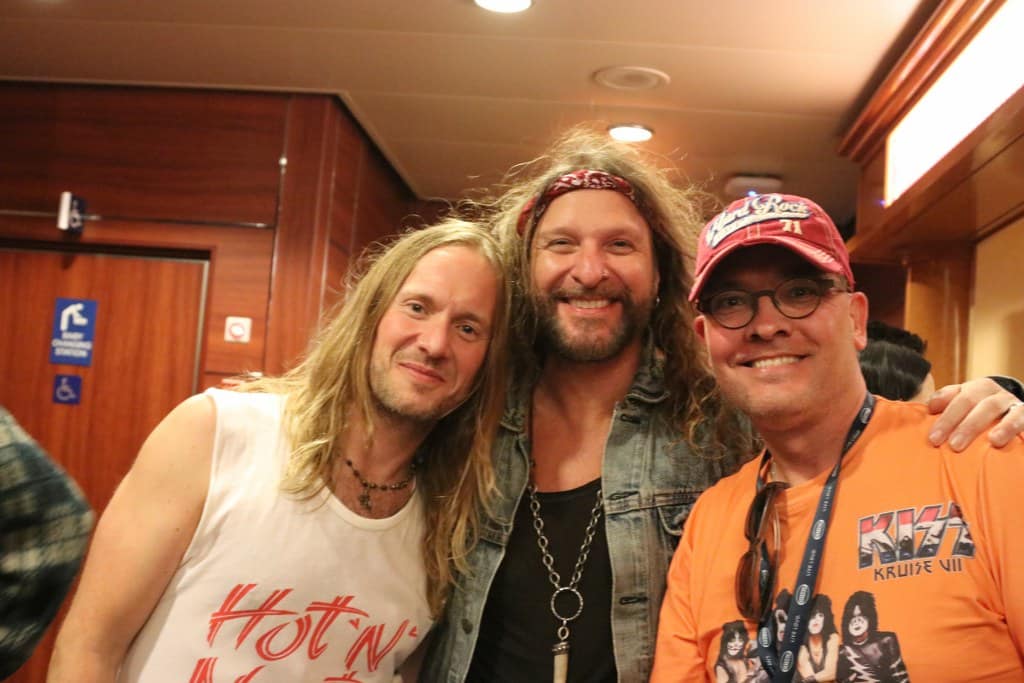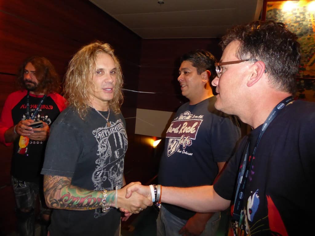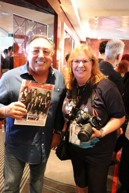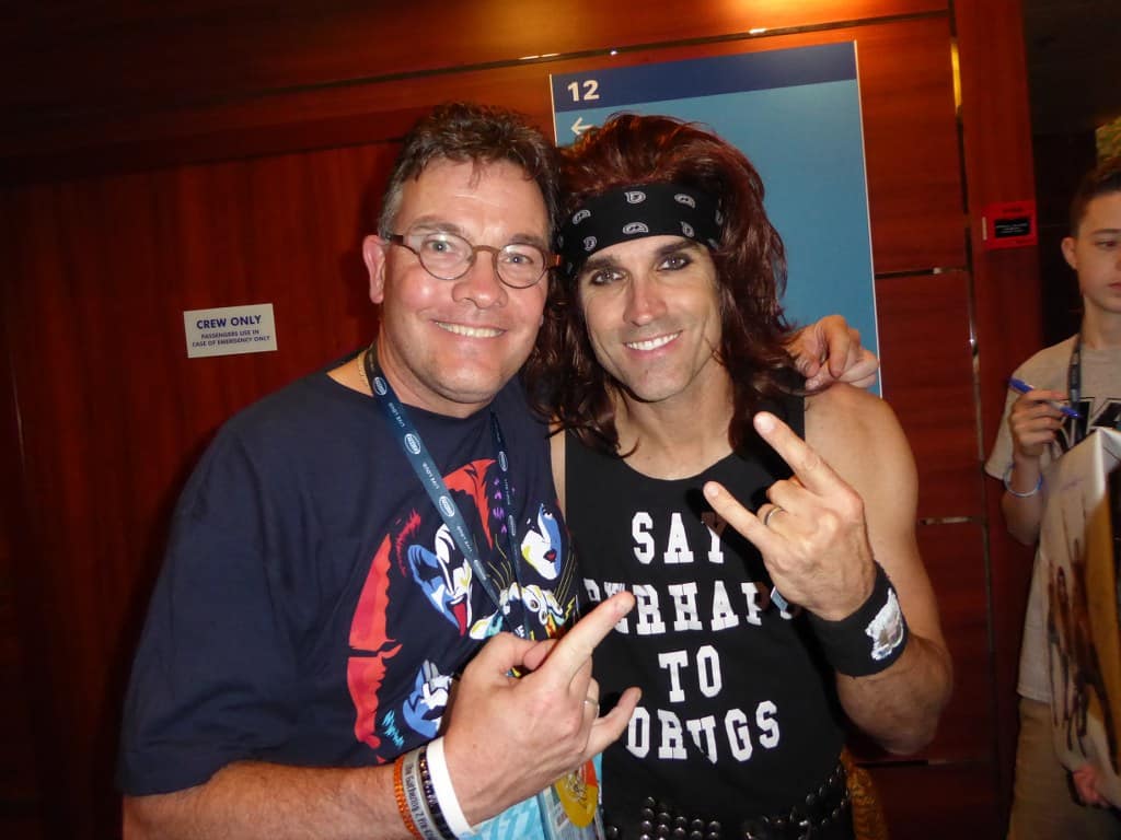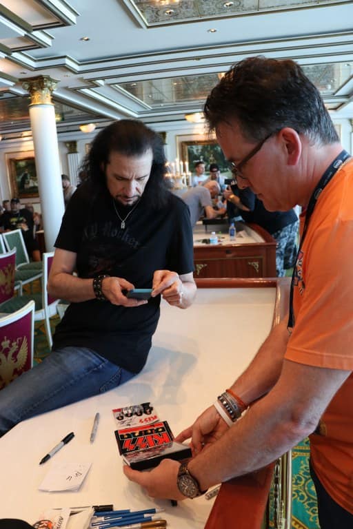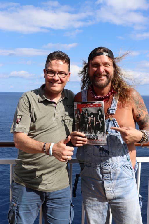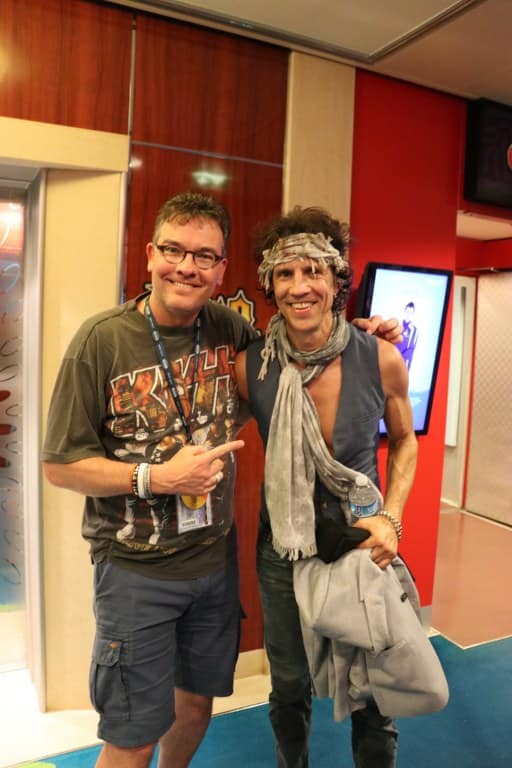 Moe en voldaan blijven deze die hards staan om ook nog klassiekers van oa. Ratt, Judas Priest, Van Halen e.d. te beluisteren, zeer enthousiast en strak gespeeld door de “KISS Kruise huisband” The Big Rock Show. De band met oa leden die ook Gene Simmons hebben ondersteund in the Gene Simmons band de afgelopen maanden! More dates will be announced soon, let’s hope for Europe! Tommy hangt nog wat rond bij het podium en op de gang komen we Michael Starr nog tegen, nog ff wat over en weer knallen, fotootje e.d. Michael is moe, ondanks dat wil Silvy graag met hem gaan slapen……..