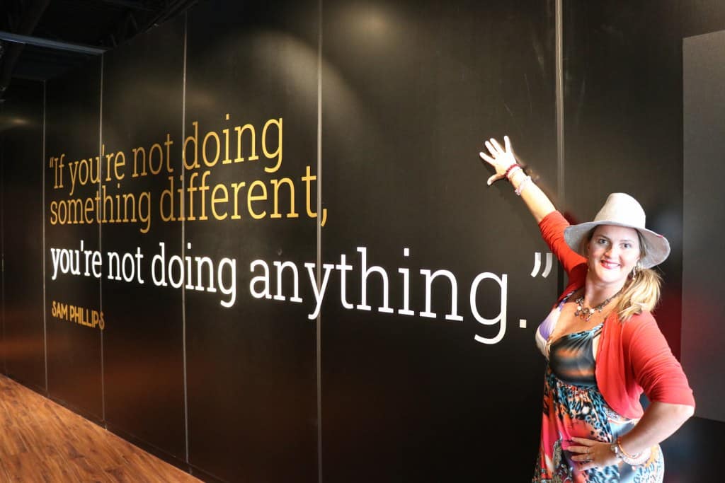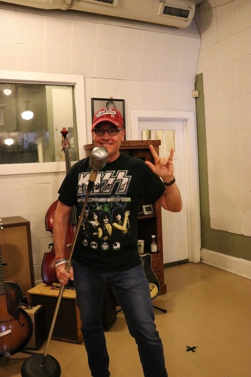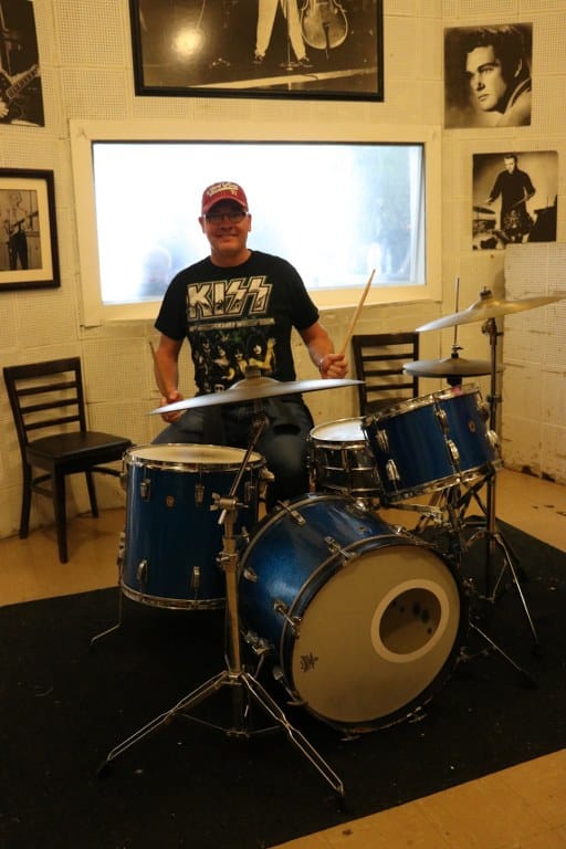 Als we het hebben over “Holy Ground” dan is het hier wel! We were there! Elvis samen met Sam, die aanvankelijk niks in Elvis zag! Legendarisch! Johnny Cash, Elvis, Jerry Lee Lewis en Carl Perkins! Op deze drumkit nam oa U2 hun Rattle and Hum album op! Same place, other drummer….. Vele muzikanten, ook Elvis, heeft deze microfoon in handen gehad. What a feeling……. Ooit geschonken aan Sun Studio wel met het doel dat deze niet achter het vitrine glas zou belanden. Mensen over de gehele wereld hebben deze microfoon dan ook al vast gehad. Kussen en tegen aan praten is niet de bedoeling want wereldwijd speeksel in deze beroemde microfoon is ook niet gewenst. Vet!