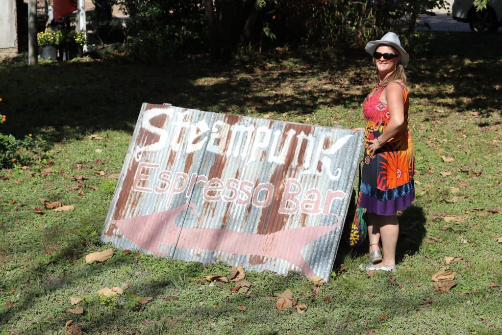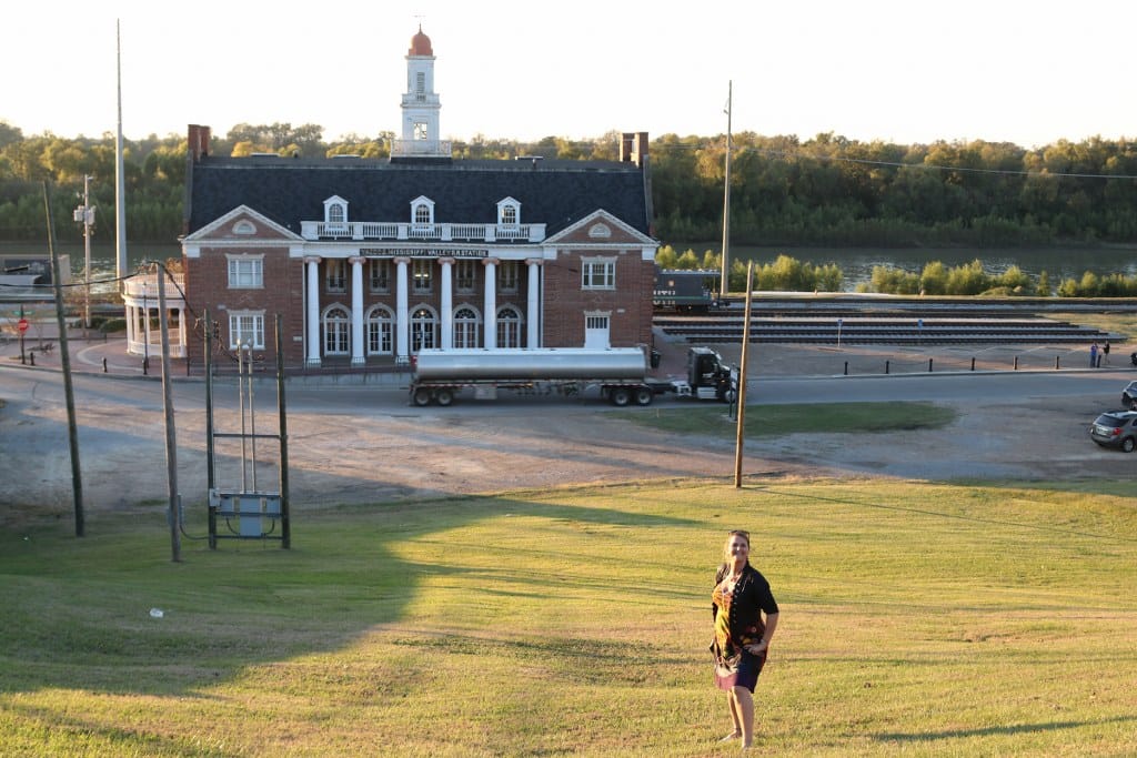 YEAH, we gaan koffie drinken in een van de gaafste koffiehuisjes die we ooit bezocht hebben. In Natchez, zeker doen! Steampunk Espresso Bar, geweldig en TOP koffie! We lopen terug naar de auto, met een prachtig uitzicht over de Mississippi River.