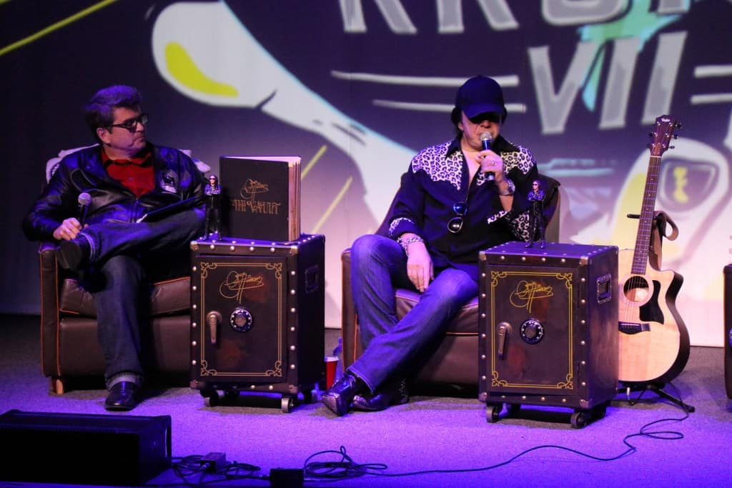 Op deze dag krijgen we ook het verhaal van Uncle Gene te horen m.b.t. the Vault. Extreme moeten we dus vandaag missen, gaan we later nog wel bekijken. Gene vernoemd nog enkele aanwezige landen, ook hier komt ons kikkerlandje weer aan bod. Holland met op zijn Amerikaans Scheveningen er achter aan. D’n Gene is de strandrace van 1984 nog niet vergeten kennelijk! Dit is serieus materiaal wat “onze” Gene gaat uitbrengen. Belangrijkste reden voor Gene zelf is dat hij van de “at least 150 songs” niet wil hebben dat er na zijn dood nog van alles mee gedaan wordt en er allerhande platenmaatschappijen en managers gaan wandelen met Gene’s opnames. We krijgen een aantal previews te horen van diverse songs. Meest opvallend: In your face, een nummer wat Gene samen met Ace schreef en ook ingezongen is door Ace. Waarom haalde dan dergelijke nummers toch een KISS album niet? Daarop weet Gene ons te melden dat in sommige periode serieus veel nummers uiteindelijk het KISS album niet haalde. Gene kwam vaak aanzetten met een 20 a 30 nummers terwijl Paul heel gericht met 6 tot 8 nummers aan kwam. Uiteindelijk moesten er keuzes gemaakt. Daarbij bekent Gene we eerlijk dat hij ook vaak kwam aanzetten met nummers die ook niet bij KISS paste maar daarmee waren deze nummers niet altijd slecht. In januari komt the Vault uit en zal met een oplage van zo’n 5.000 verschijnen. Uniek en nooit eerder gedaan in de muziekhistorie is dat Gene the Vault persoonlijk komt afleveren wereldwijd. Een the Vault tour zal volgen in 2018. Data zijn terug te vinden op Gene’s the Vault website. Geweldig hoe $ene dit kan promoten! Daarbij heeft Gene meerdere malen herhaald dat hij zichzelf verzameld. Gene: I Collect Me! Hell Yeah, een van DE Kruise VII uitspraken! The Vault Experience, yep erg vet!