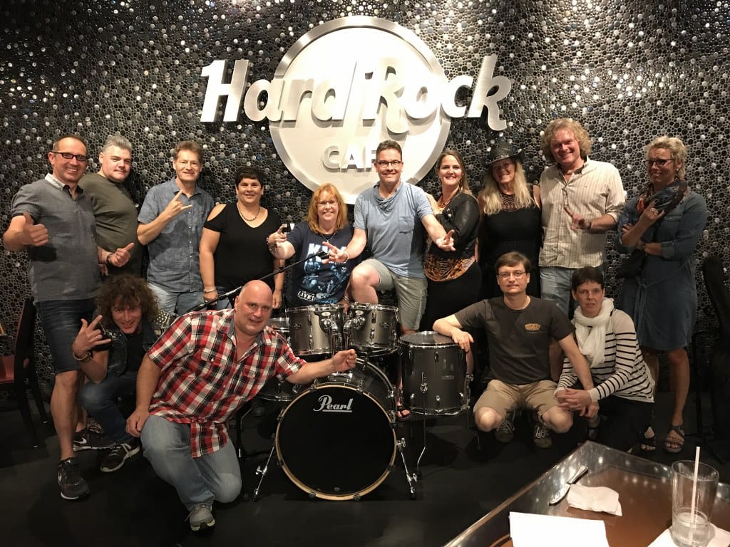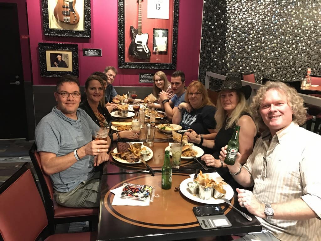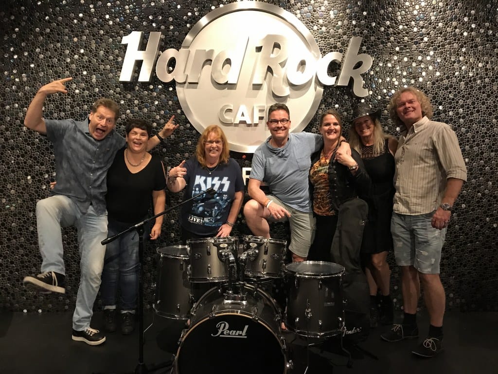 Wat een heerlijke maar ook vermoeiende dag in New Orleans! We doen nog een drankje in de buurt van ons Hotel, daarna relaxing time in ons Hotel. Om 20.00 uur hebben we met Theo, Edith en hun dochter met vriend, Welmer en Tanja afgesproken om te gaan eten in de Hard Rock Cafe van New Orleans. Gezellig! Nederland ontmoet Belgie in de Hard Rock Cafe van New Orleans. KISS Familie, yeah!!