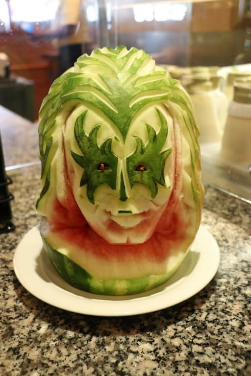 De spullen op de kamer en eerst ff zorgen dat onze NL vlaggen hangen. Yeah! Het rood, wit en blauw op de Pearl mee naar Mexico. Ook tijdens het lunchbuffet zijn de meloenen in “KISS stijl”.