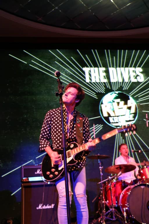 Ja, wij schrijven ook in voor Bill Aucoin in de Hall of Fame! Slechts een tweetal manager gingen hem voor maar wie en waar was KISS zonder Bill? Na een niets zeggend optreden van Ken Sharp (die kan beter boeken schrijven dan zingen/componeren) is het tijd voor The Dives. Gelukkig zijn de sympathieke jongens van The Dives geen onbekende meer en kennen ze mij inmiddels ook. Tja, Engeland, New Orleans, Miami, The KISS Kruise e.d.