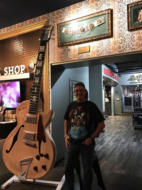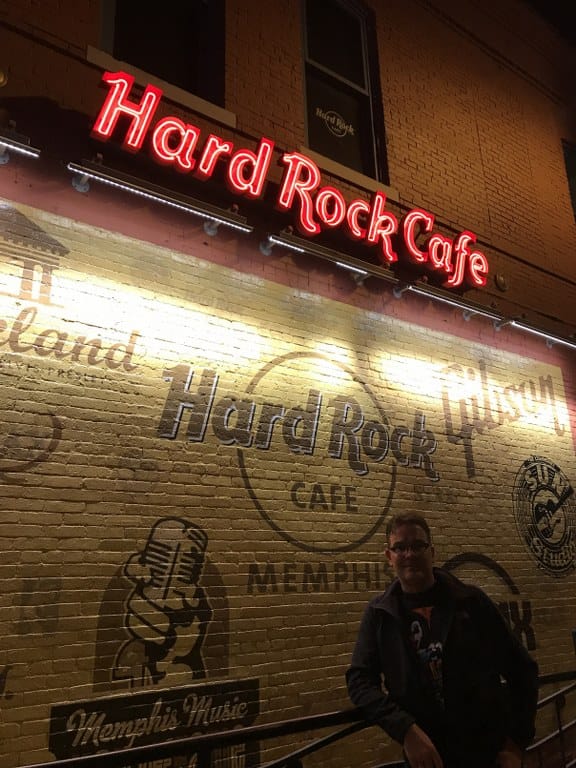 Na ruim 4 uur genieten, deze tijd heb je echt wel nodig daar, reizen we af naar ons Hotel. Nog 15 km rijden en dan zijn we er! Aangekomen (rond 16.00 uur) in Memphis downtown, checken we in bij DoubleTree Hilton Memphis Downtown. Hier verblijven we twee nachten! Onze laatste stop van deze geweldige trip. Rond 19.00 uur gaan we eten bij de Hard Rock Cafe van Memphis, ligt om de hoek bij ons hotel.
