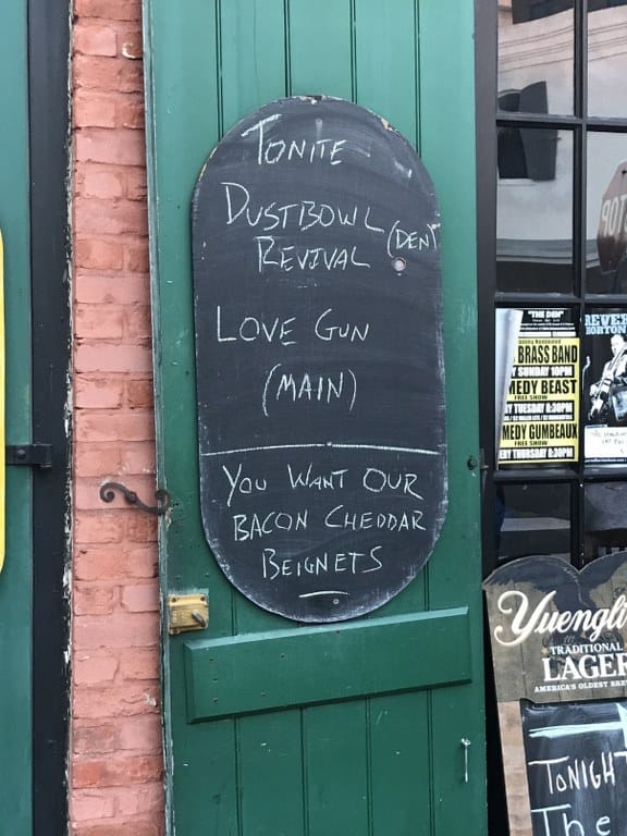 We doen een 260 calorieën koffie bij PJ’s Coffee. Een snoepdrankje ipv koffie! Ook even binnen bij Loisiana Music Factory, veel jazz en blues weinig Rock en Metal!