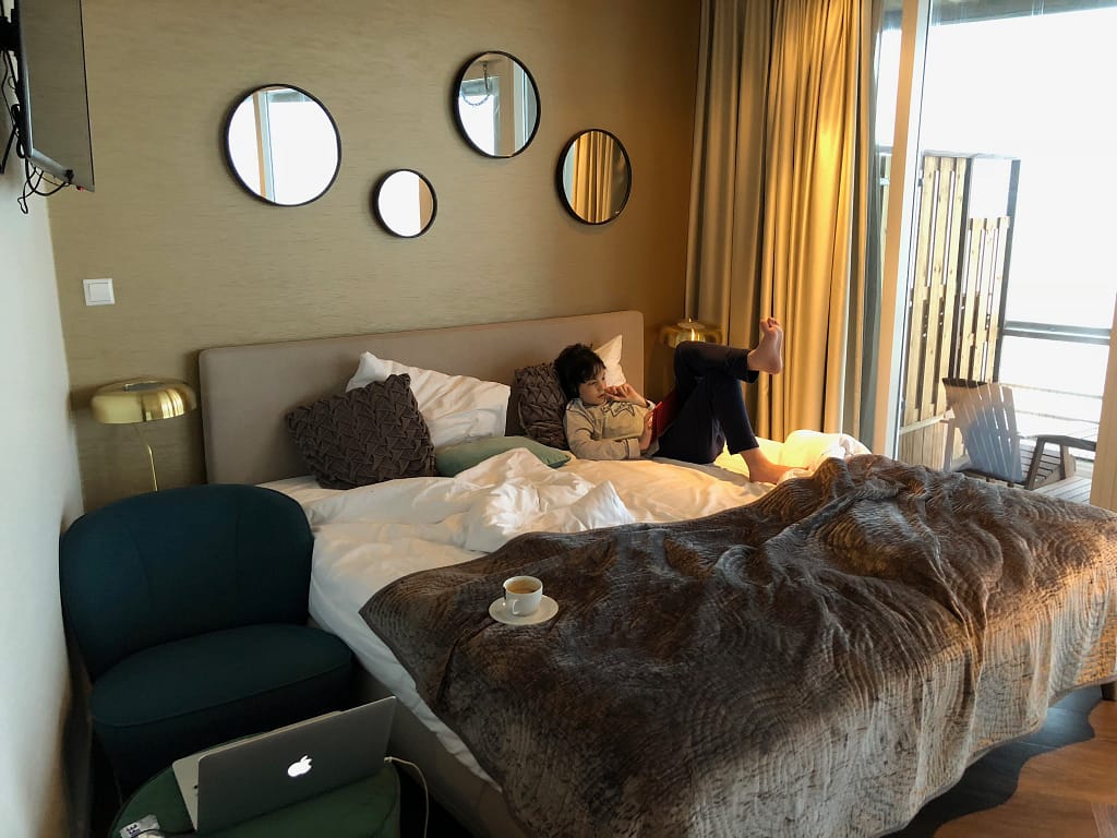 Terug op de kamer is het tijd om ons bubbelbadje in de “woonkamer” te vullen. Lekker in bad TV kijken, soms is het leven echt slecht……. Uitgezweet het bad uit en lekker op bedje tv kijken. Rond 23.00 uur gaan de oogjes dicht.Scheveningen!