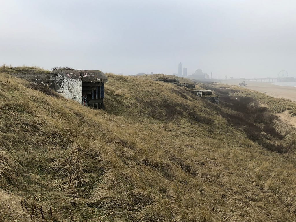 13 januari: GOEDEMORGEN van de Pier te Scheveningen! We kunnen rustig aan doen want we kunnen pas ontbijten om 10.00 uur, gelukkig is er op de kamer ook koffie! Bij de bovenburen “De Pier Pannenkoeken” krijgen we een heerlijk ontbijt voorgeschoteld. We komen niks te kort. Aansluitend de wandelschoenen aan en op voor een leuke duinen/strandwandeling. Ons vorige bezoek aan Scheveningen sliepen we hier in het Carlton Beach hotel, ook een prima locatie! Eens kijken of de vijand in zicht is, WWII heeft immers hier ook nog zijn resten nagelaten!
